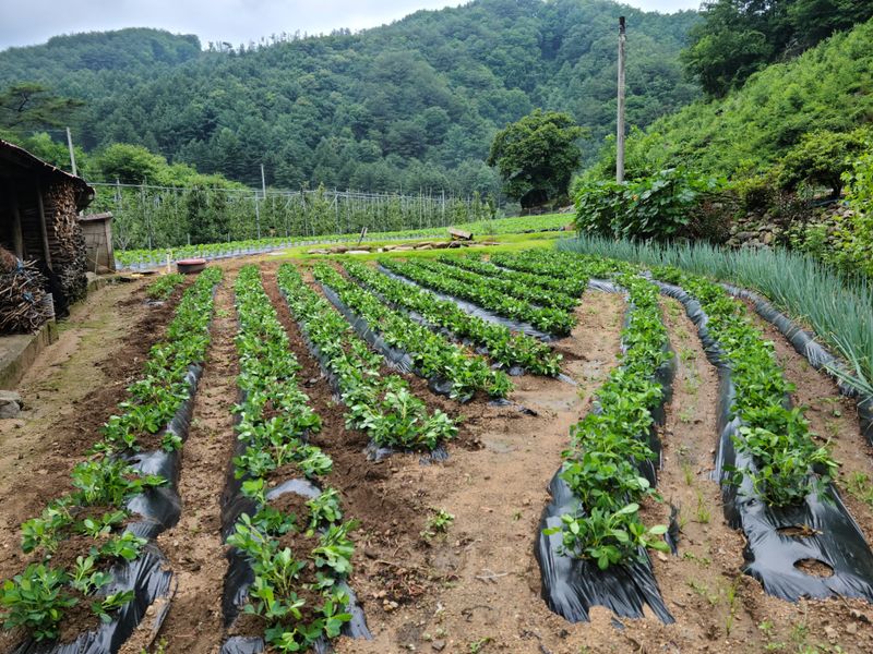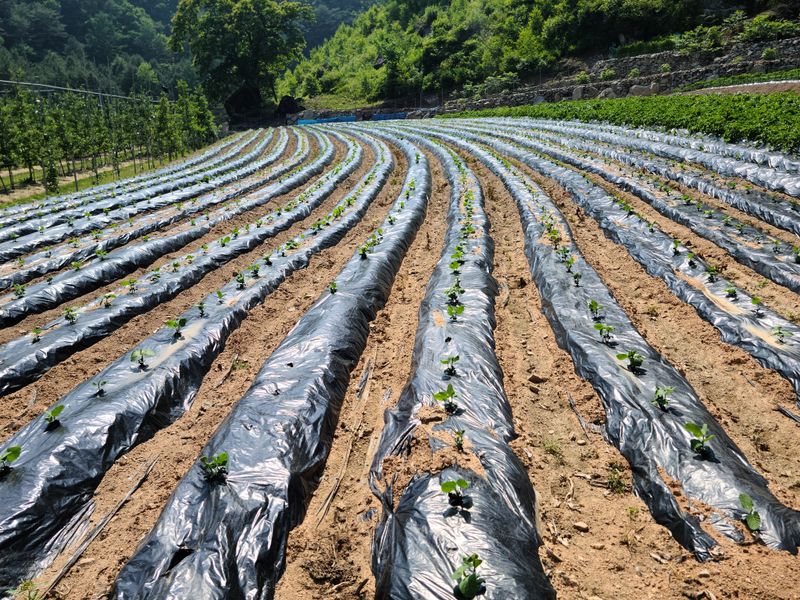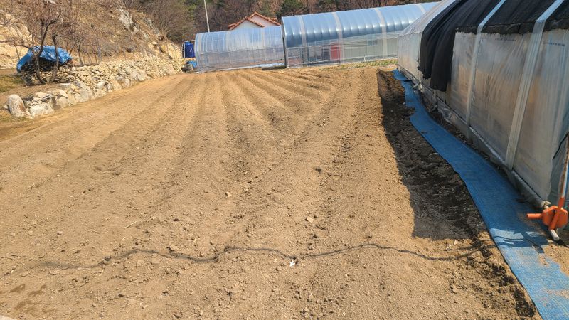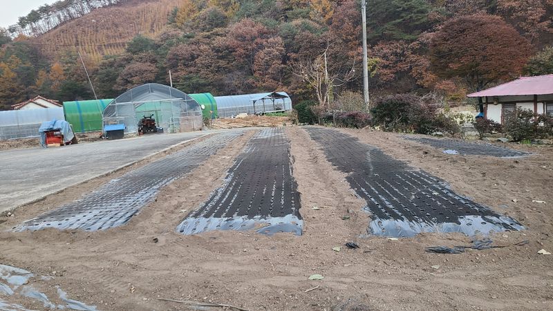 하우스 고추 심기-600주 마늘,산채밭 비료 살포 하우스 고추밭 제초매트 깔기