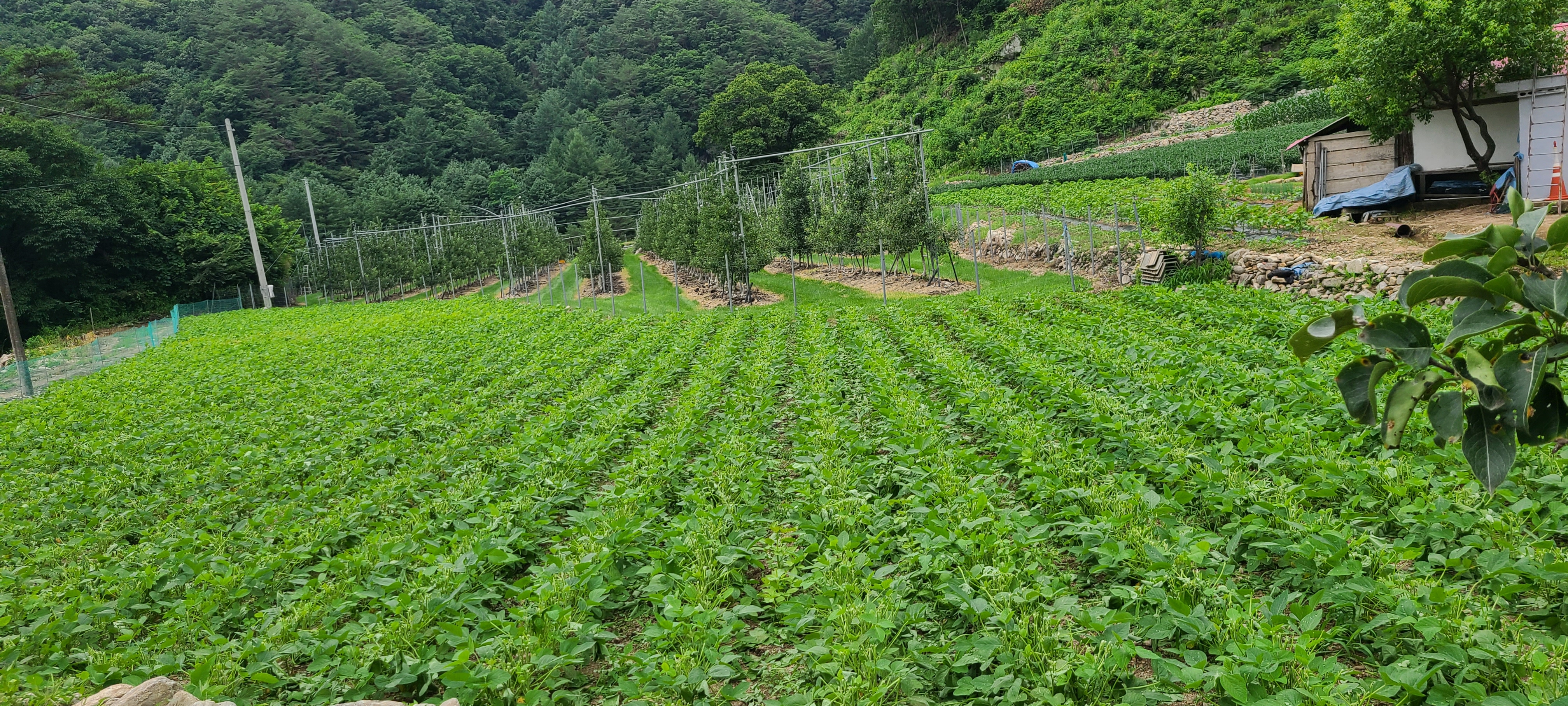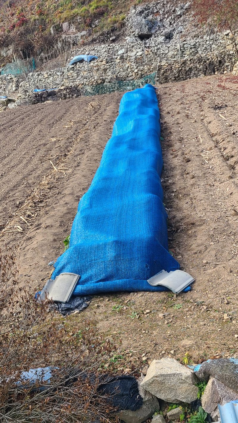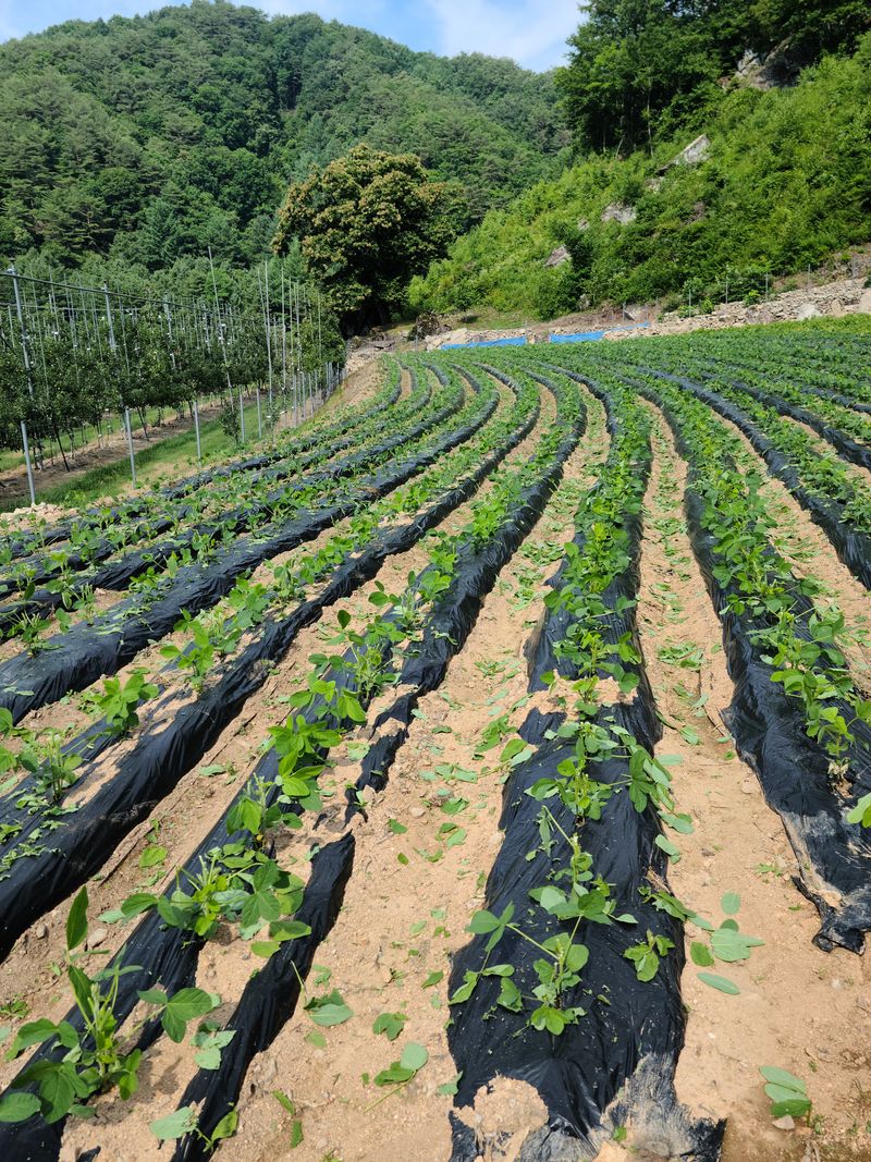 콩밭 잡초 제거 콩밭 두렁 제초제 살포 ㅡ1 통 콩밭 고라니 방제 망 설치