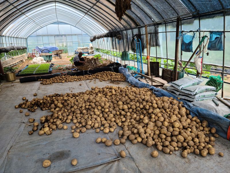 감자 선별 박스 작업ㅡ저온저장고 보관
