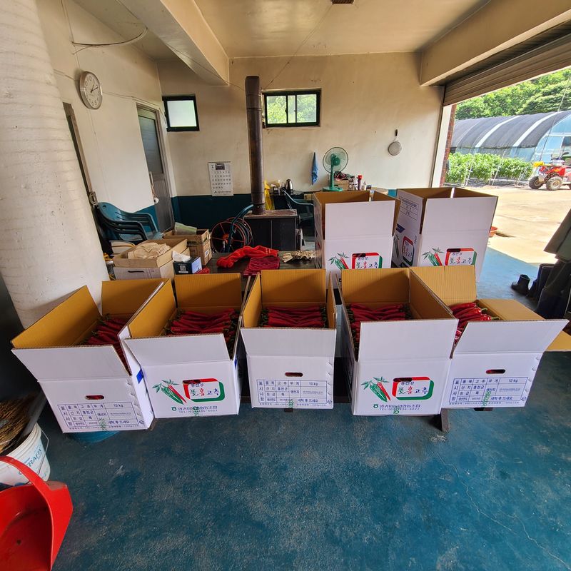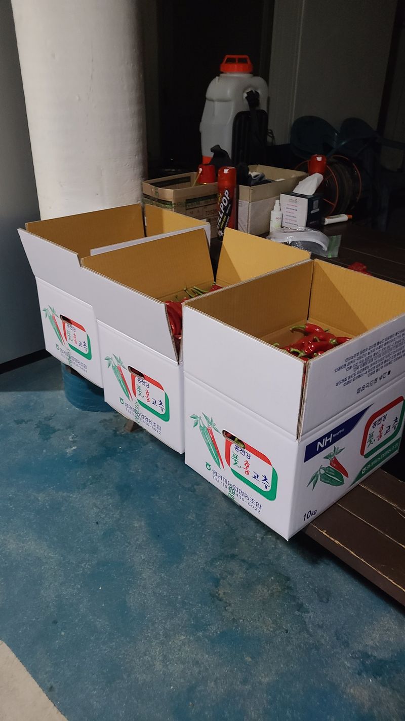 노지 고추 수확 ㅡ140kg 특 11 ,상4박스 선별 박스작업 고추세척 건조기 투입ㅡ30kg 반건조된 고추 비닐하우스 널기 노지고추 판매 11박스(특10,상1),ㅡ360,000원 청양고추 수확 및 박스 작업 ㅡ2박스(20kg)
