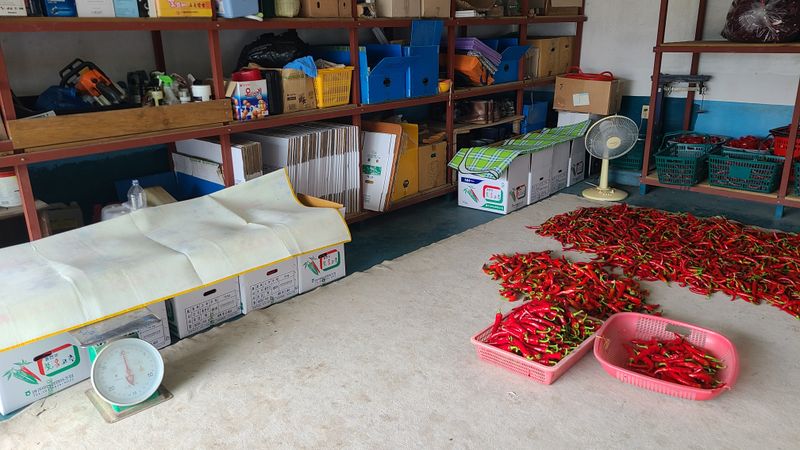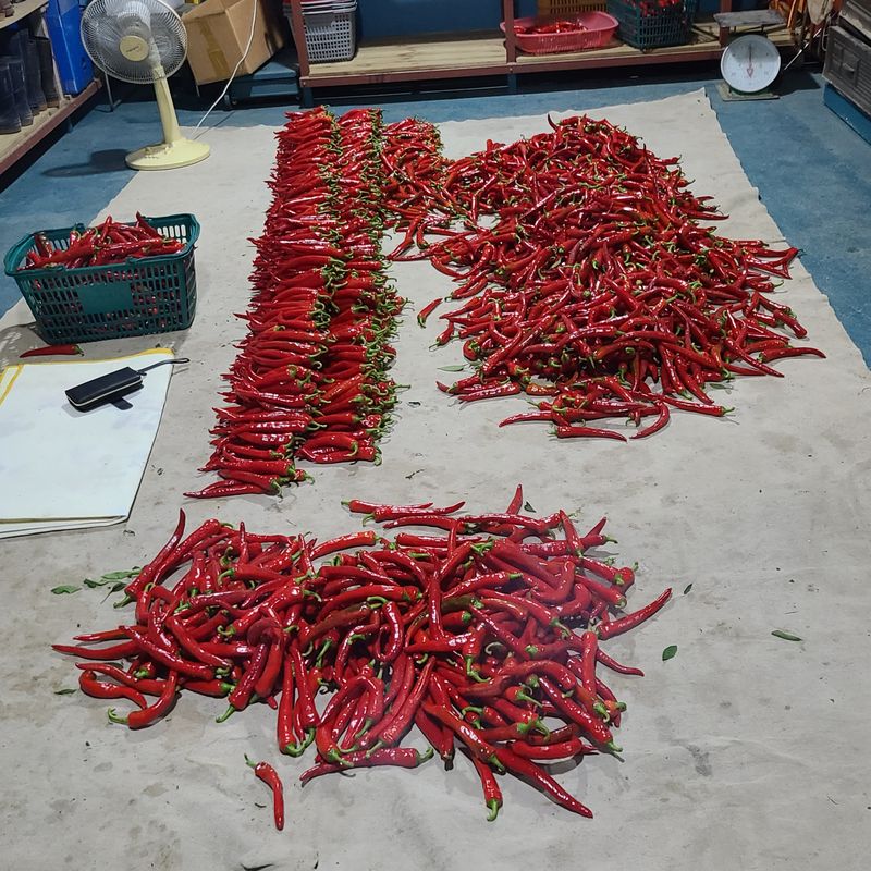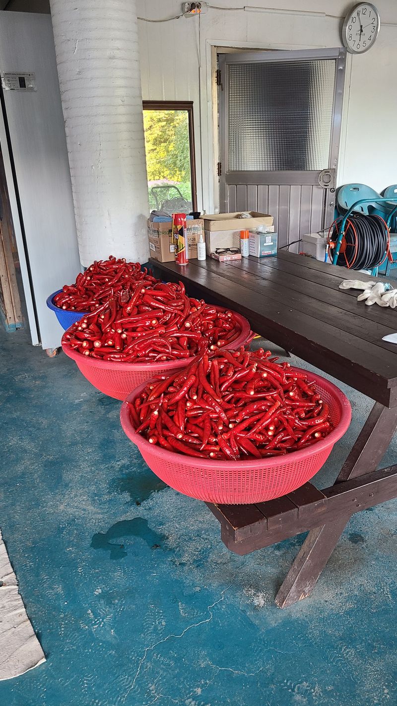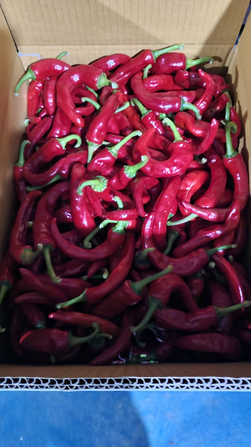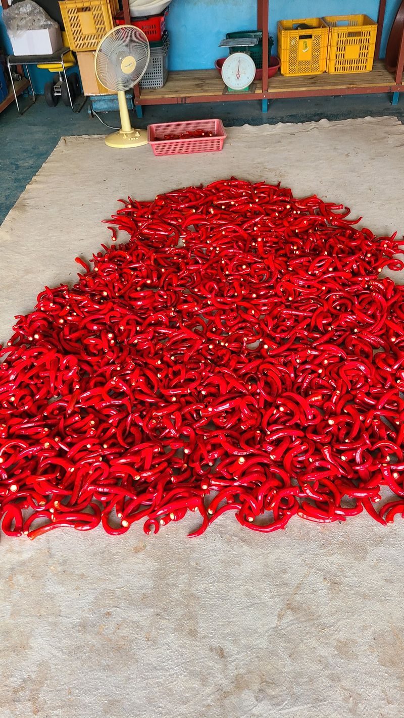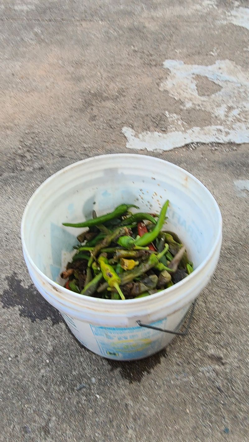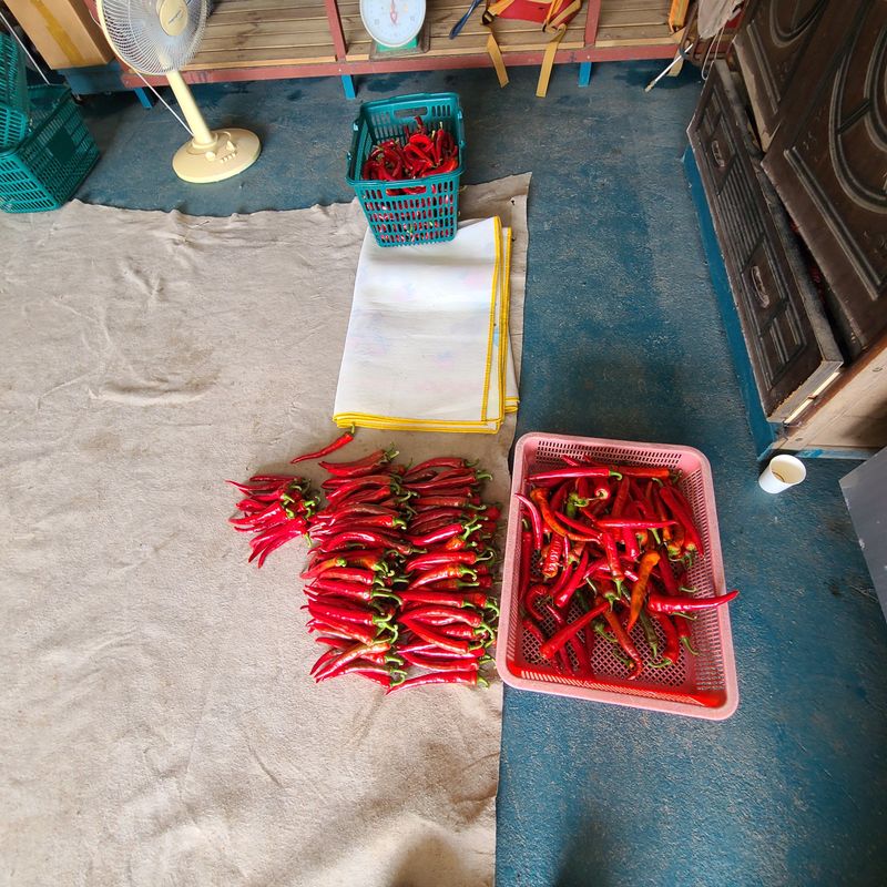 고추 세척 건조기 투입 하우스고추 출하ㅡ9박스(특8,상1) 하우스고추 수확 및 선별 박스작업ㅡ5박스(특4,상1) 하우스고추 추비 주기 ㅡ관주 MK maxㅡ5kg 노지고추 물주기
