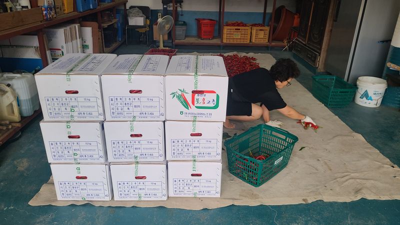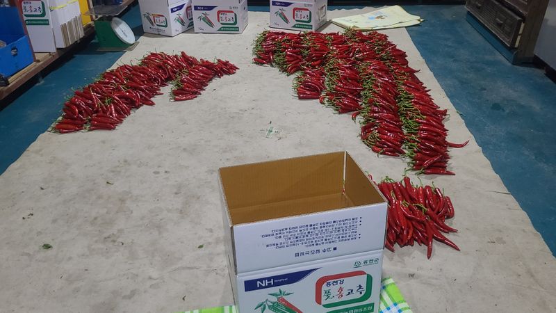 노지 고추 따기 및 선별 박스 작업-110kg 특-5박스 상-6박스