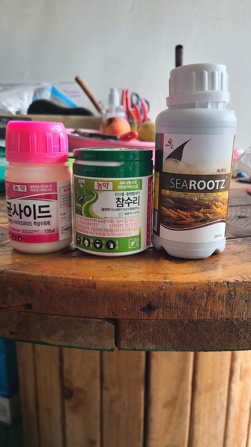 노지고추 방제 및 영양제 살포 농약 프론트ㅡ탄저병ㅡ40ml 킹팜골드 ㅡ총채,나방ㅡ40ml 트랜스폼ㅡ진딧물 ㅡ40ml 영양제 칼액션ㅡ무름방지,칼슘ㅡ160ml 써프라이즈 ㅡ개화,결실촉진ㅡ160ml 하우스 고추 방제 및 영양제 살포. 농약 킹팜골드 ㅡ30ml 트랜스폼ㅡ30...