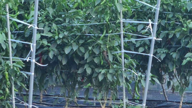 하우스고추 순치기 도복된 고추 세우기및 고정줄 매주기
