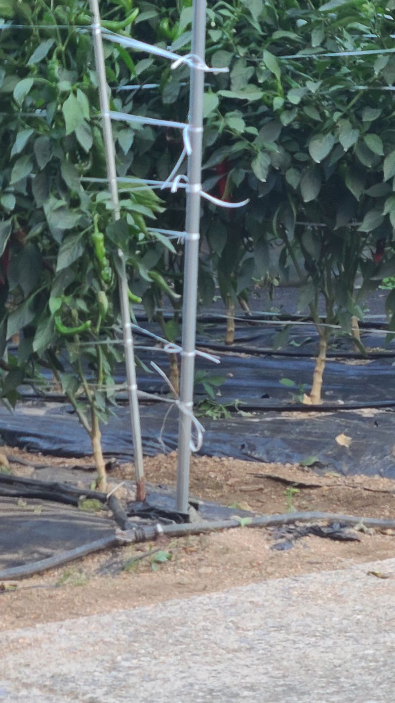 노지고추밭 2차 곁순제거및 유인줄 올리기와 고정줄 매기