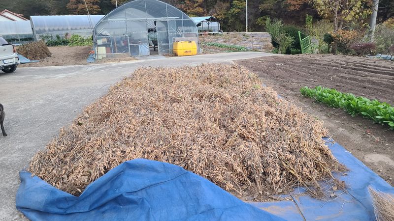 서리태 탈곡 마늘밭 콩깍지 덮기