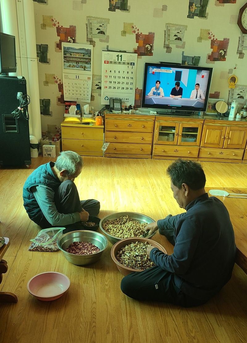 콩 선별 작업-216kg 홍고추 세척 건조기 투입-30kg 마님과 원주 다녀옴