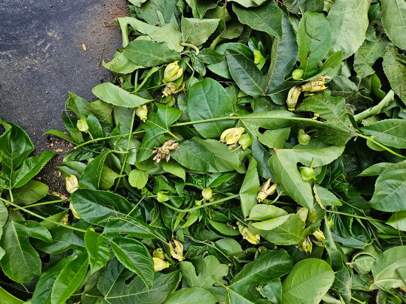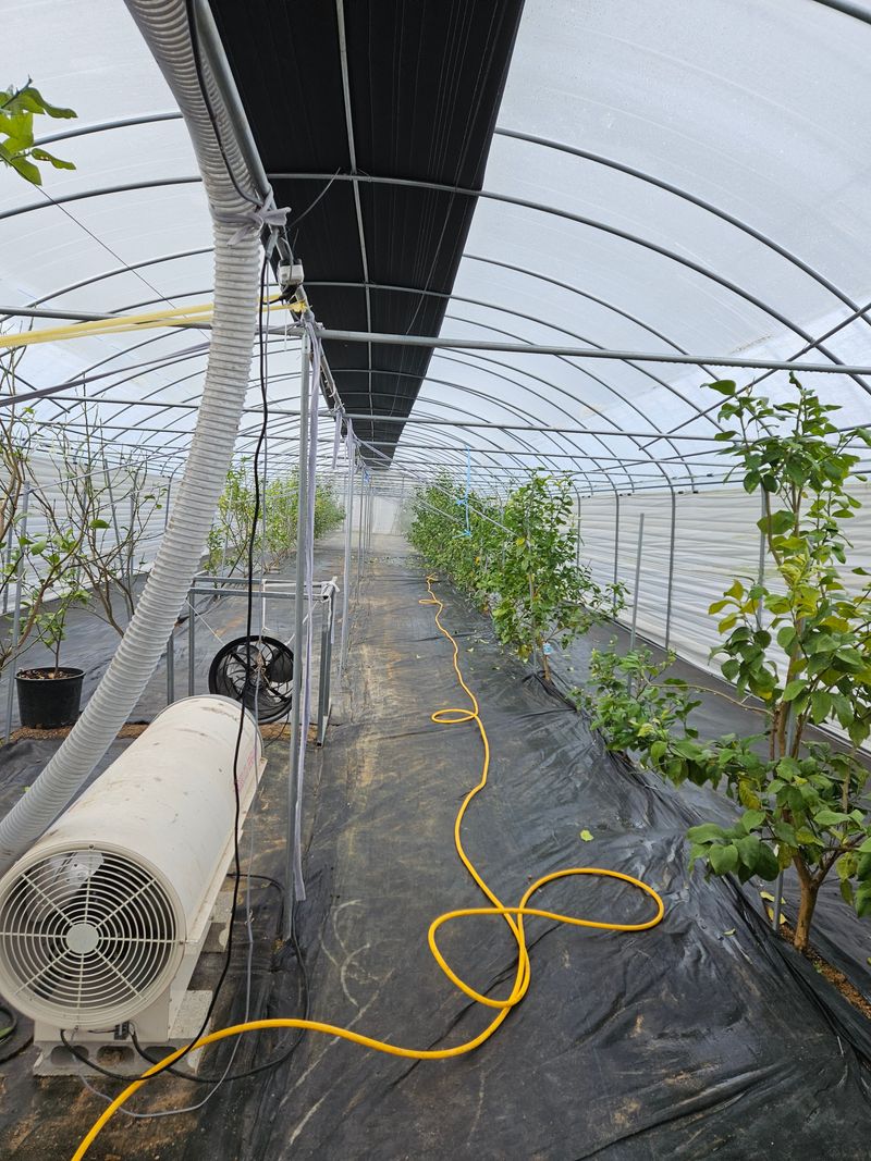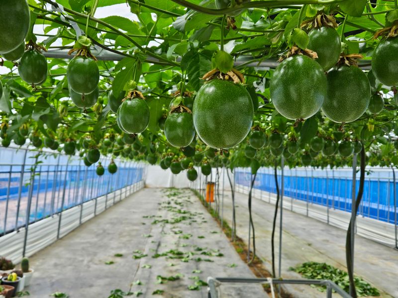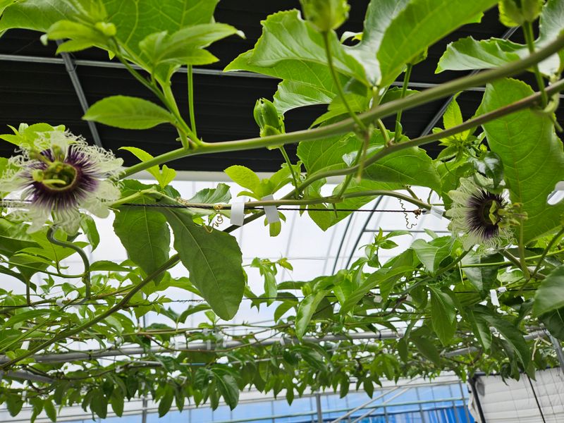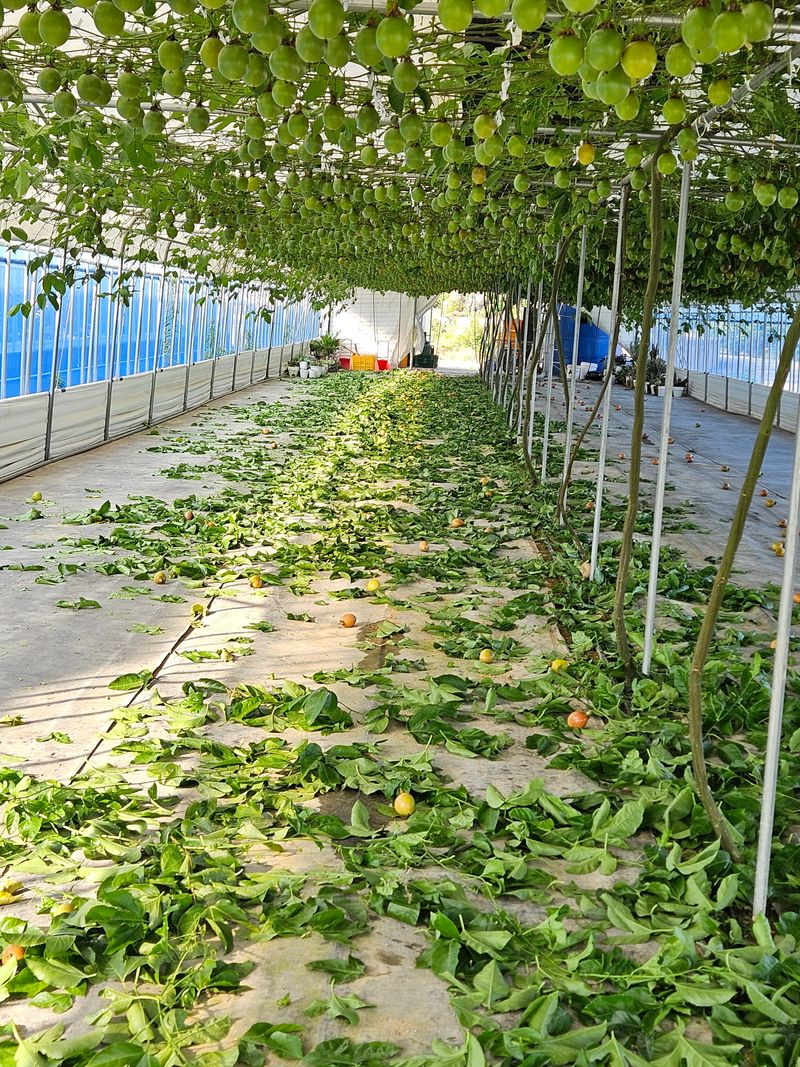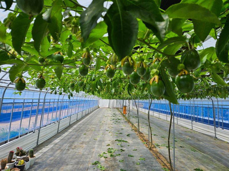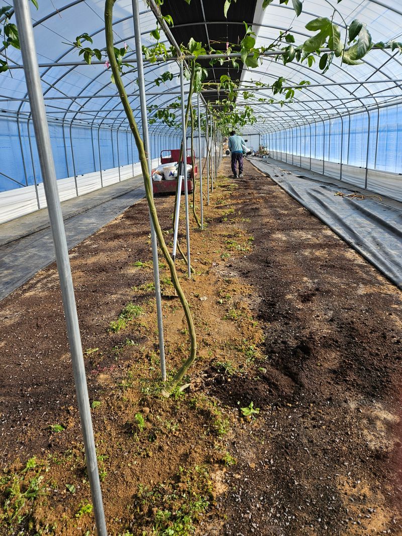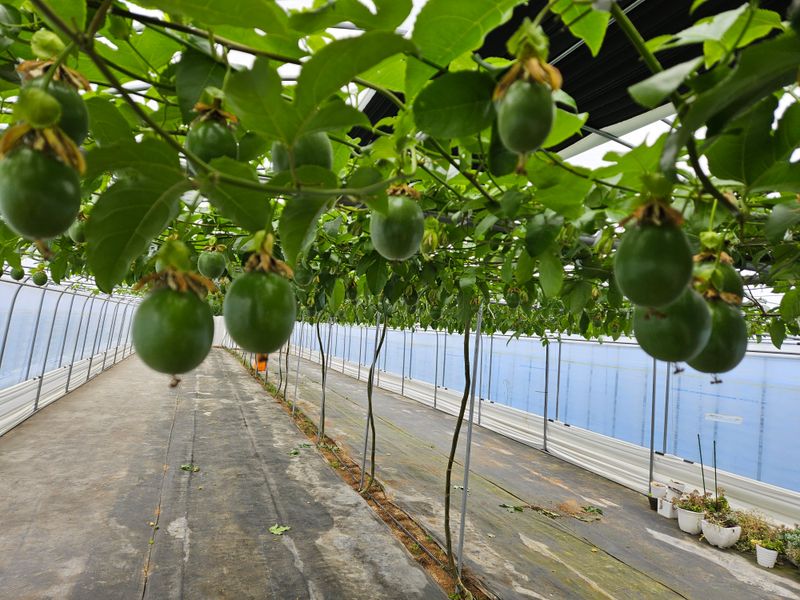 올해는 남부지방 장마가 벌써 끝나고 무더위가시작 된것같다.강누량 부족이 열려되고 다른작물 흉작이 예상된다.백향과 본격적으로수확하기 전 2차 수확을위한 이파리제거 및 이틀마다1시간씩 관수 해주고있음. 아열대작물이지만 낮에 너무 무더워 천창차광막을펼쳐 햇빛차단도 하고...