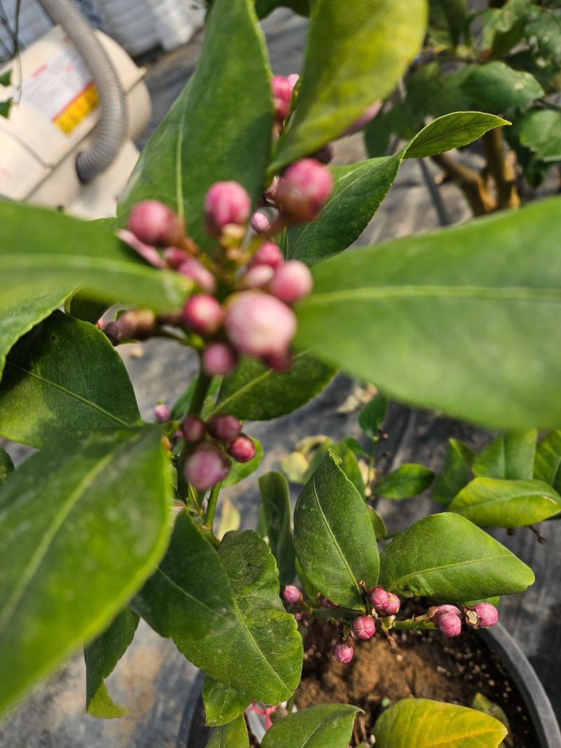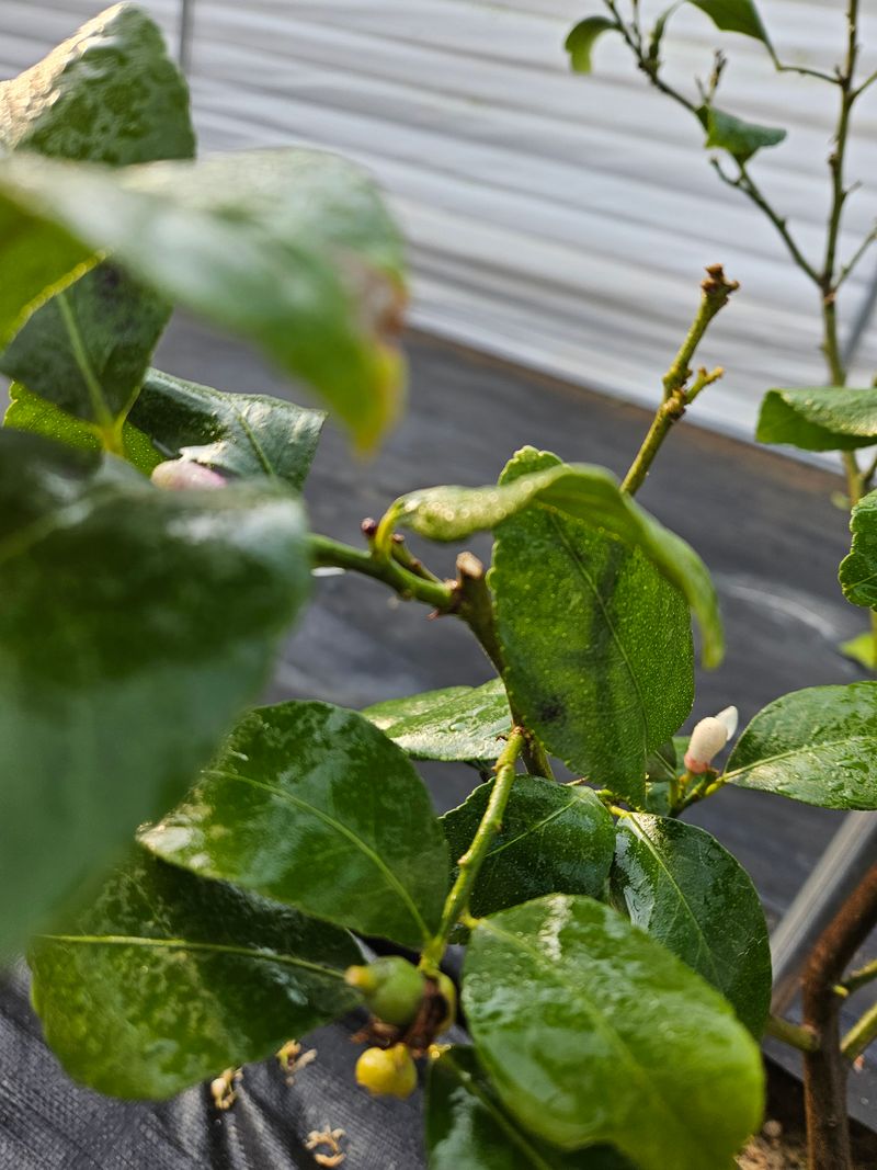레몬 친환경올킬, 충에는 살포. 귤나방방제, 벌써 작게 열매가 보이고 꽃도피는 중입니다.