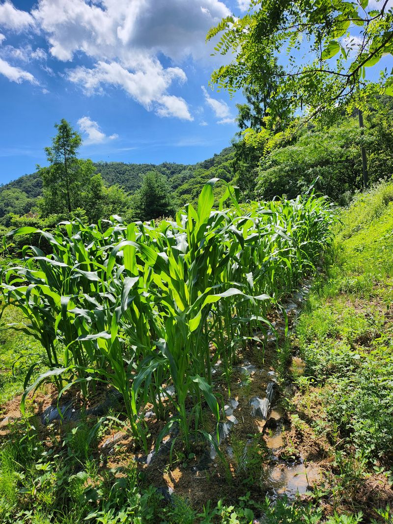 옥수수 지난 비바람에 쓰러져 일으켜 세운다고 힘들었는데 잘 자라고 있네요