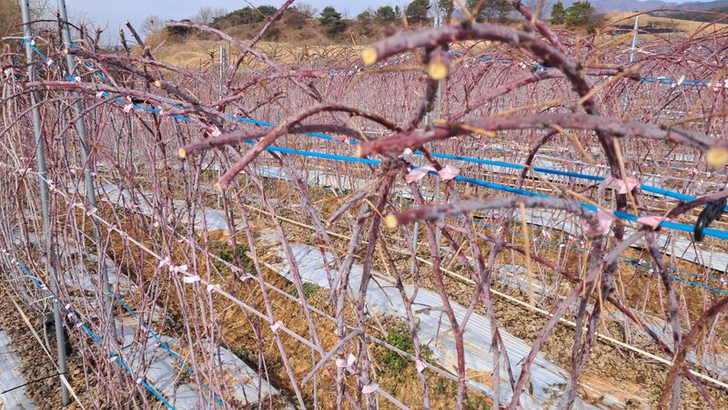 개복숭아 밭 예초기 작업 삽목 거봉 포트작업