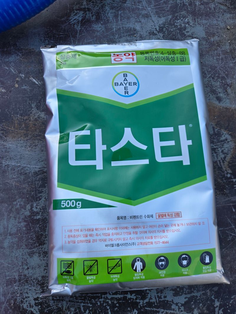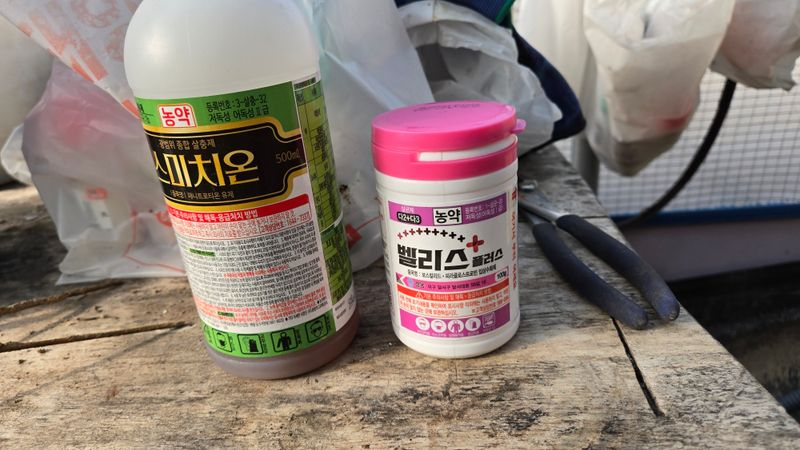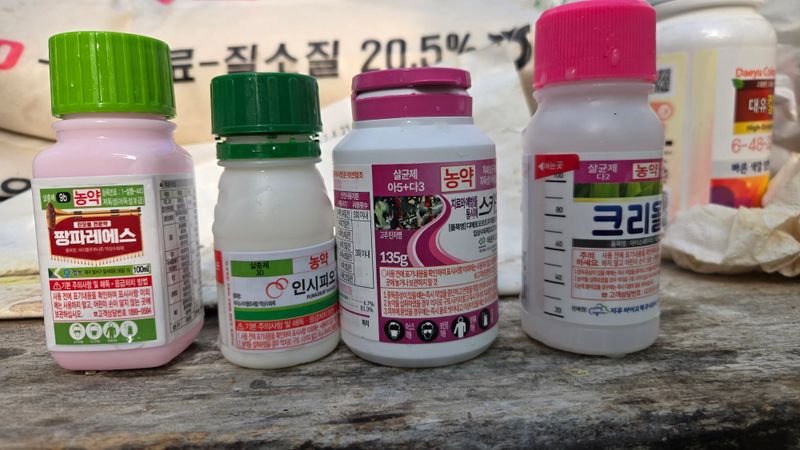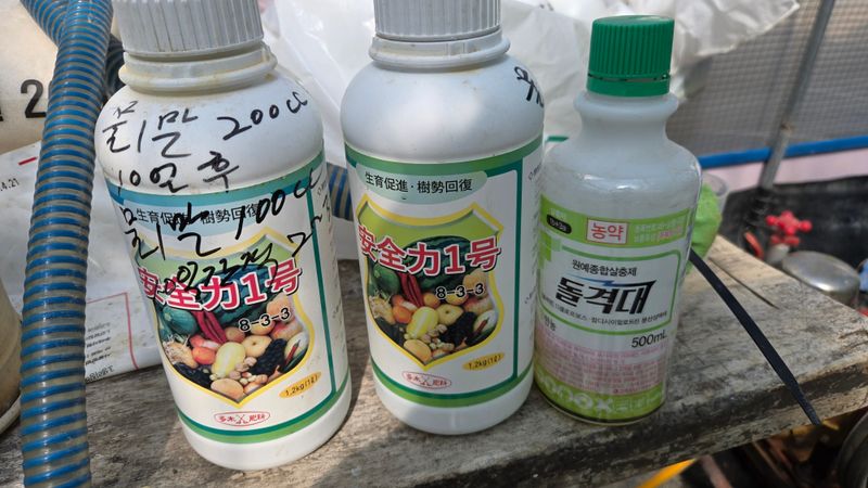 병충해 방제 라보트 400g 팬텀 200g 브라마이신 40g 물400리터 혼합 스프링쿨러 살포 물 10톤 관주