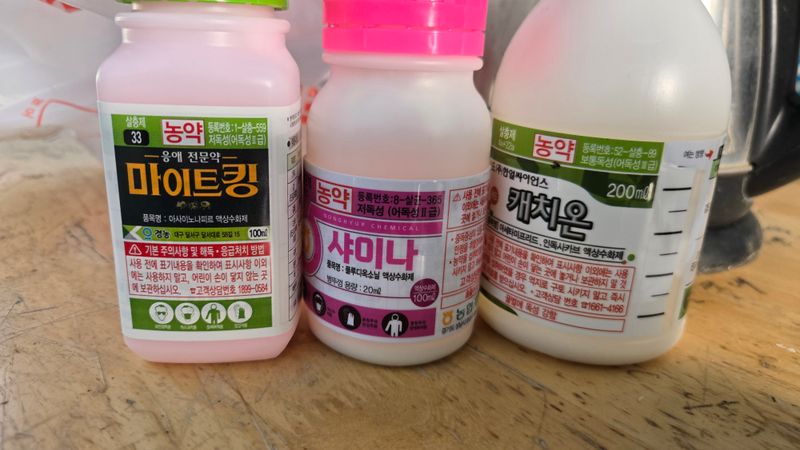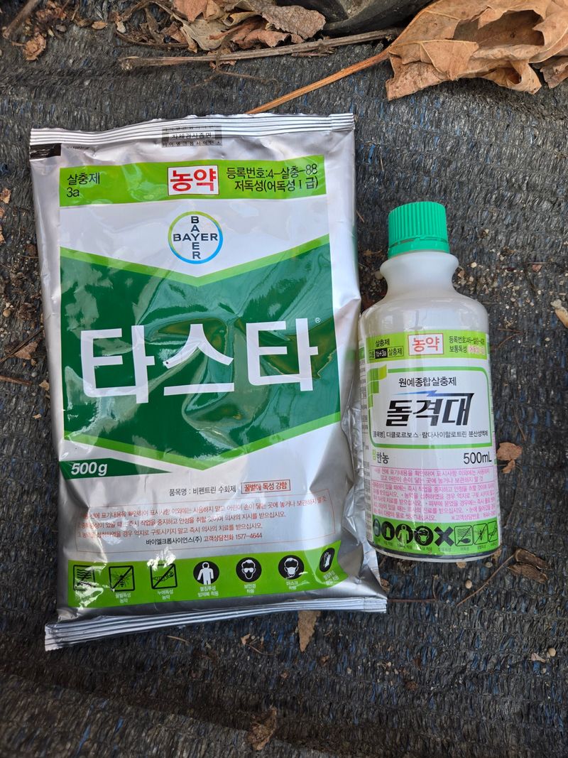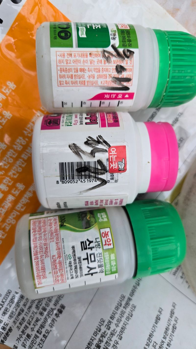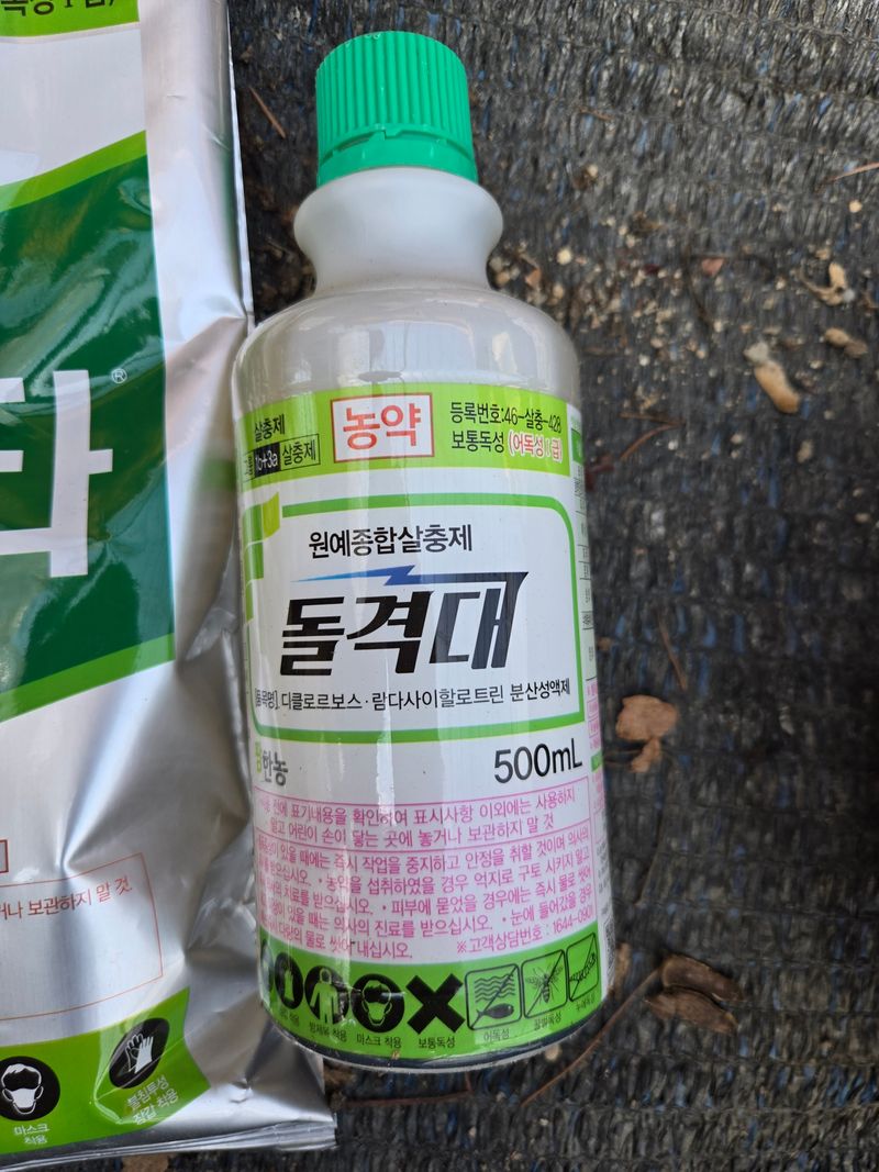 순정리 순 유인작업 진행 오전 해충방제 안전력1호 1000 ml 돌격대. 100 ml 혼합 물 400 리터 옆면시비