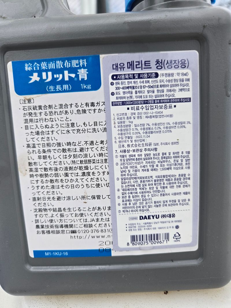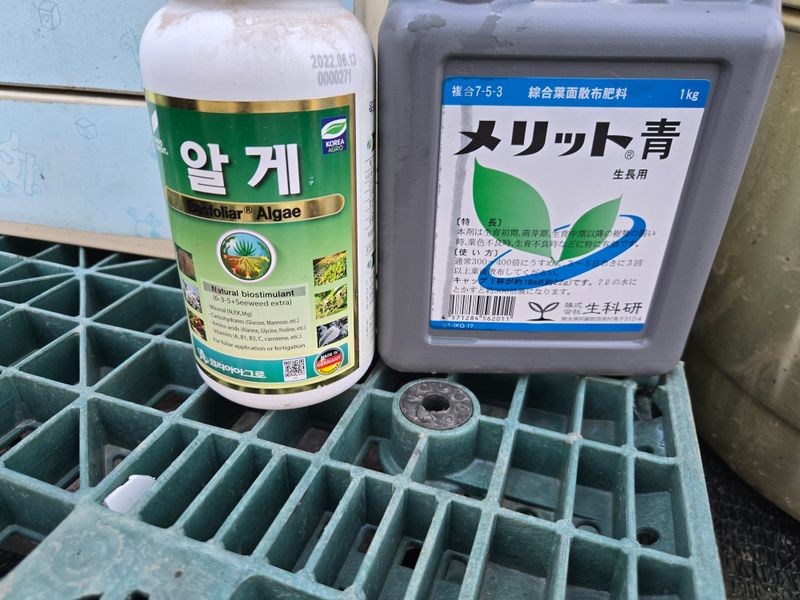 오전 관주시비 물 4시간 관주 비료 NK 5 kg 요소 3kg 나르겐 500그램 2봉 흙물 7바가지 혼합 관주시비