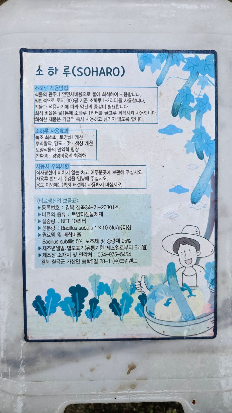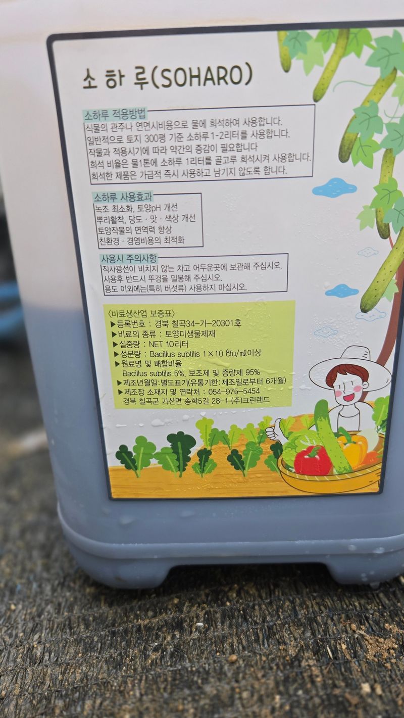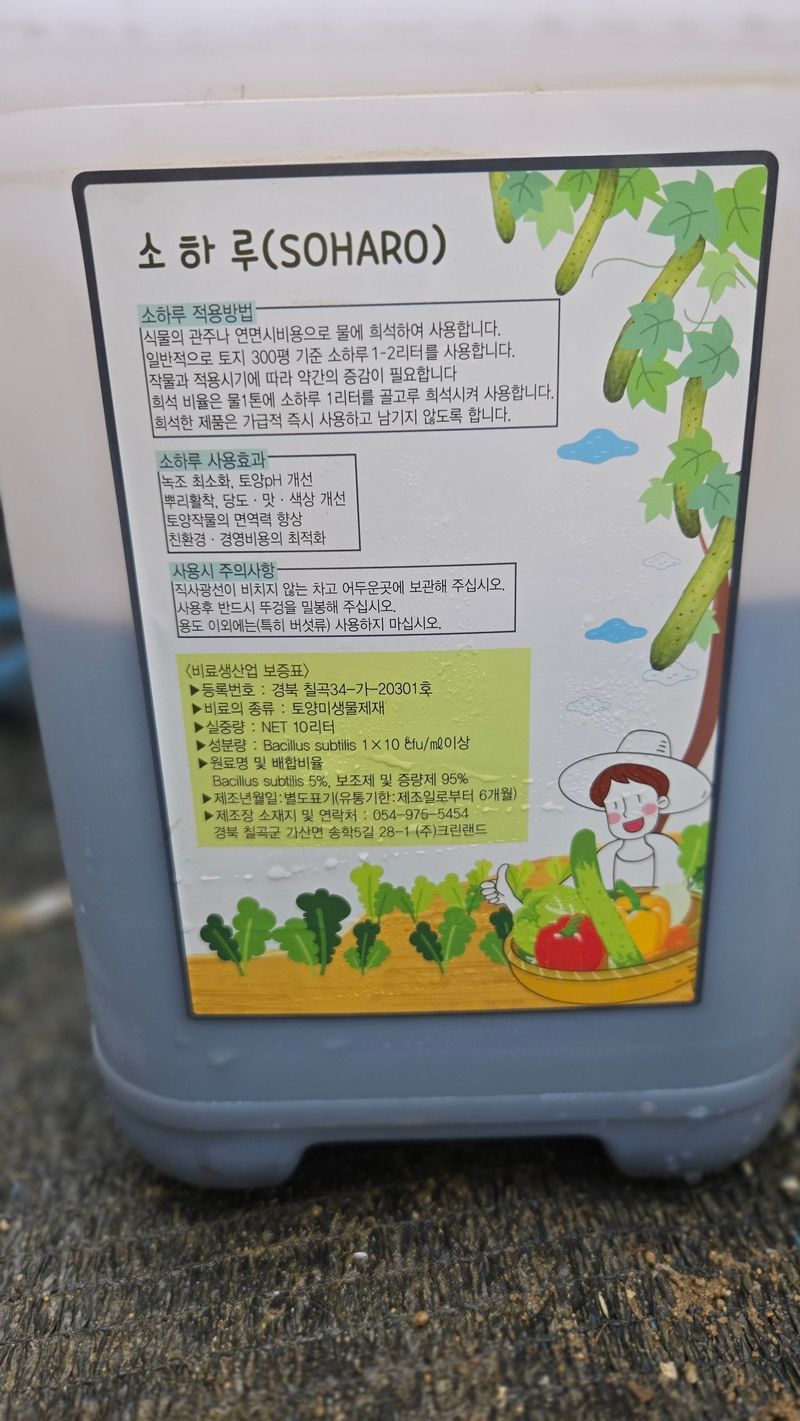 소하루 6리터 애니자임 70그램 물 5톤 관주후 소하루 관주시비