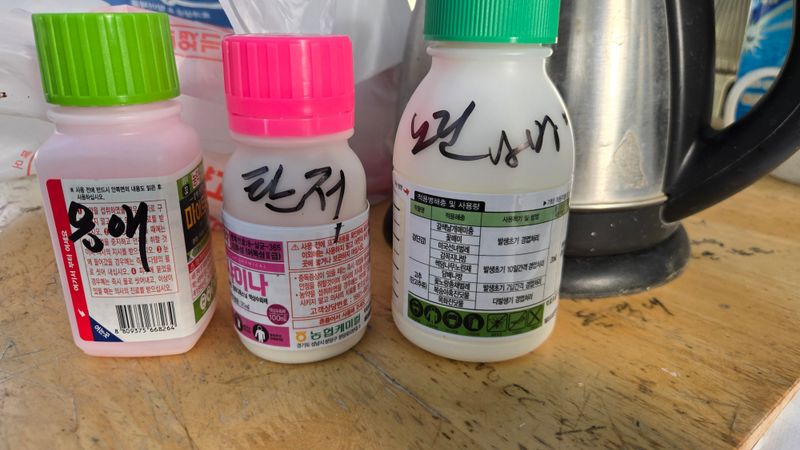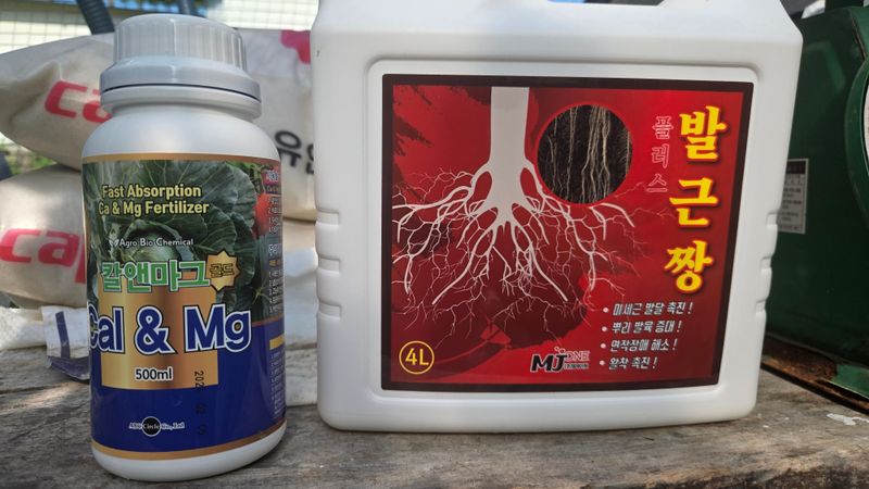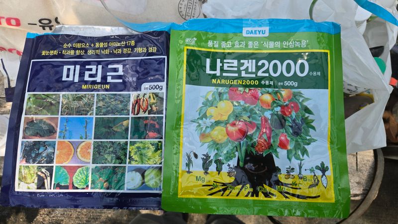 관주 3시간 미리근 나르겐 각 한봉 500그램 뿌리발근제 4리터 1병 요소 1키로 물400리터 혼합 관주