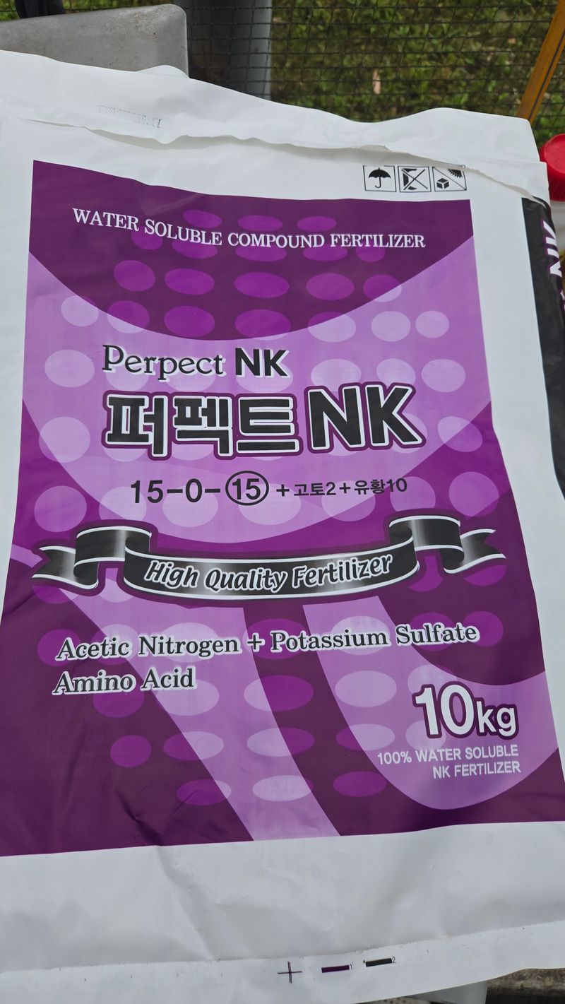 관주 물 3시간 관주 비료관주시비 포펙트 NK 10 kg 2포 요소 2 kg 물 400 리터 혼합 관주시비