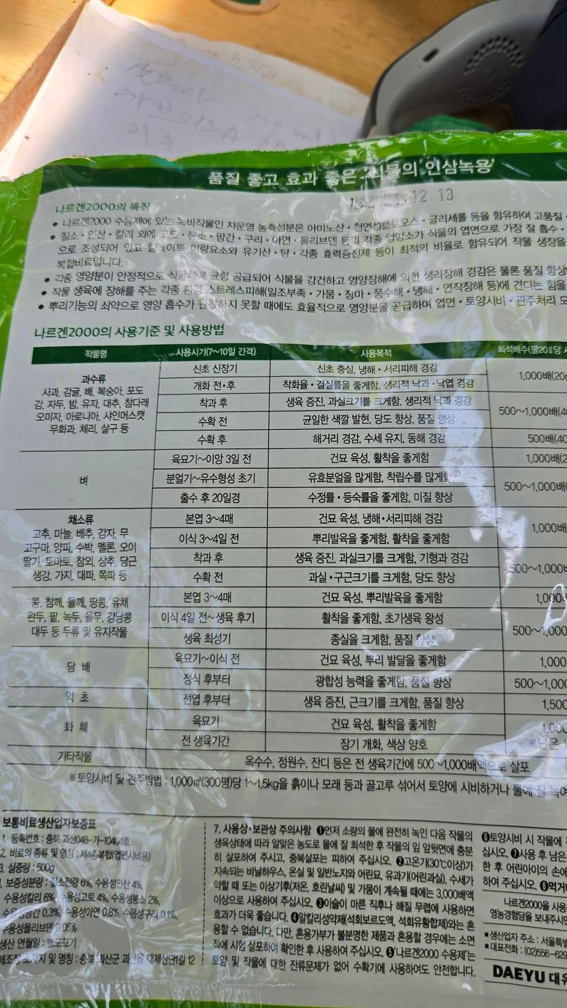 순정리 순자르기 알고르기 작업진행 비료구입 Nk (k-fert), 5포 구입 1포 만원