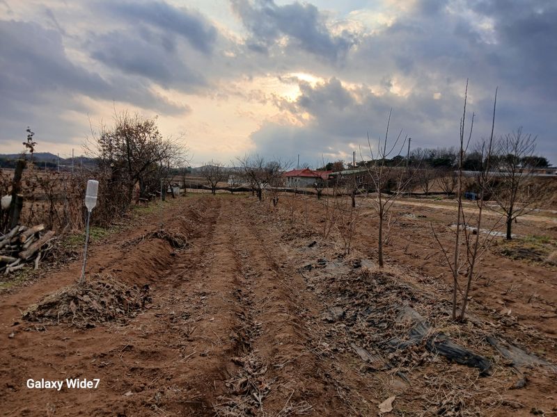 복숭아 묘목을 추가로 더 정식했 습니다. 잠깐 추위가 물러가고 좀 온화한날이 지속될전망이라 부지런히 두둑만들고 정식후 볏짚과 낙옆으로 보온좀되라고 덥어주었습니다. 집안에서는 아직도 청태고르기를 하고 있내요