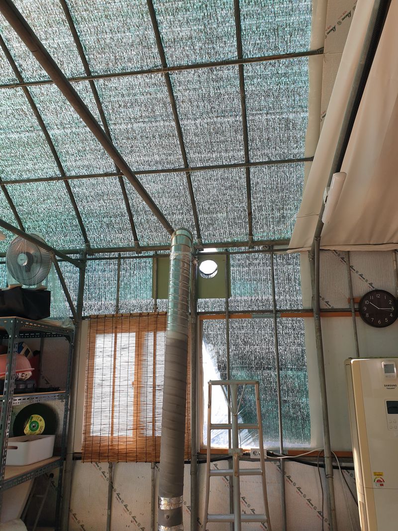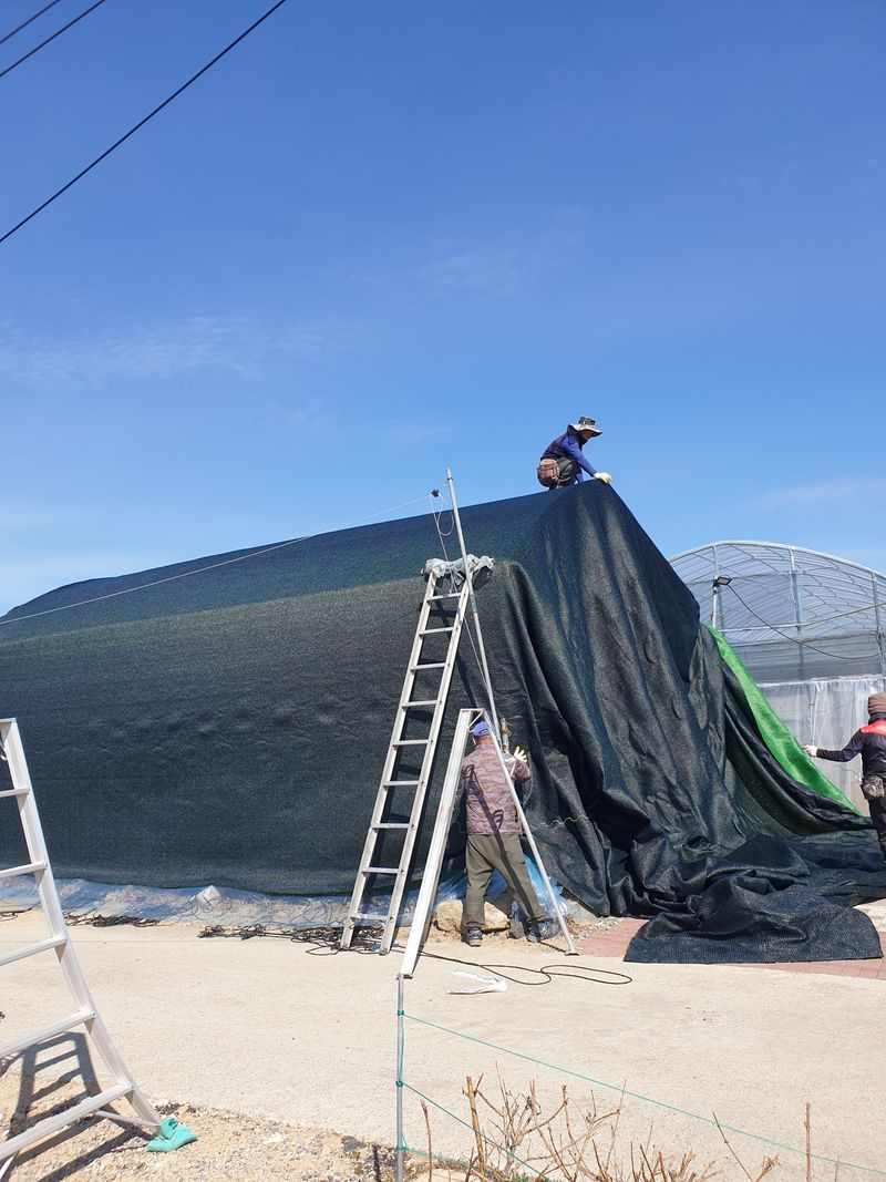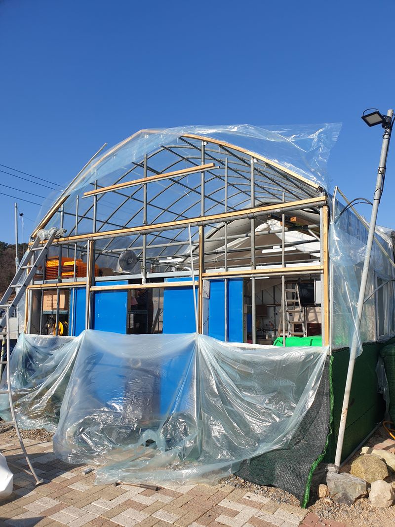 농막공사 완료함. 노지 방조망 기둥세우기함.