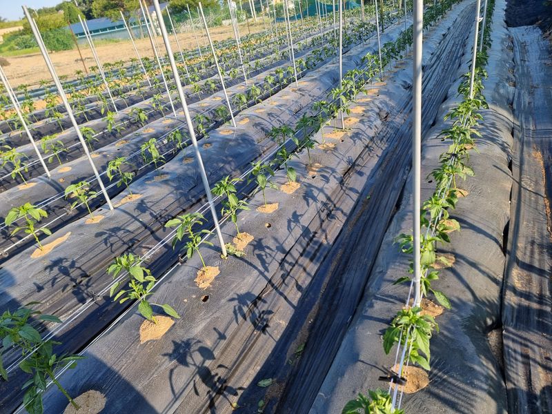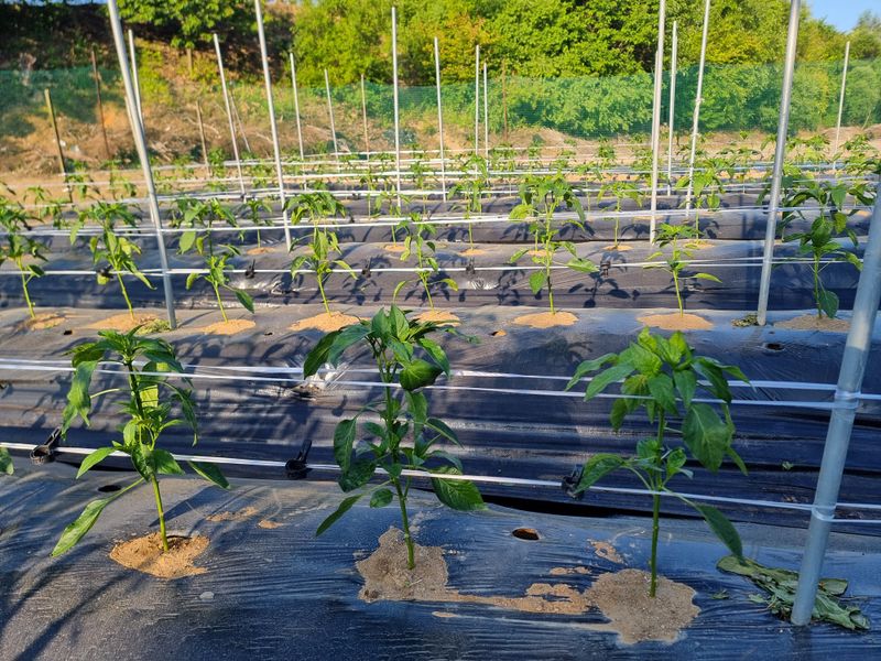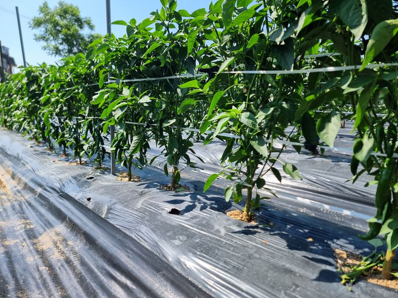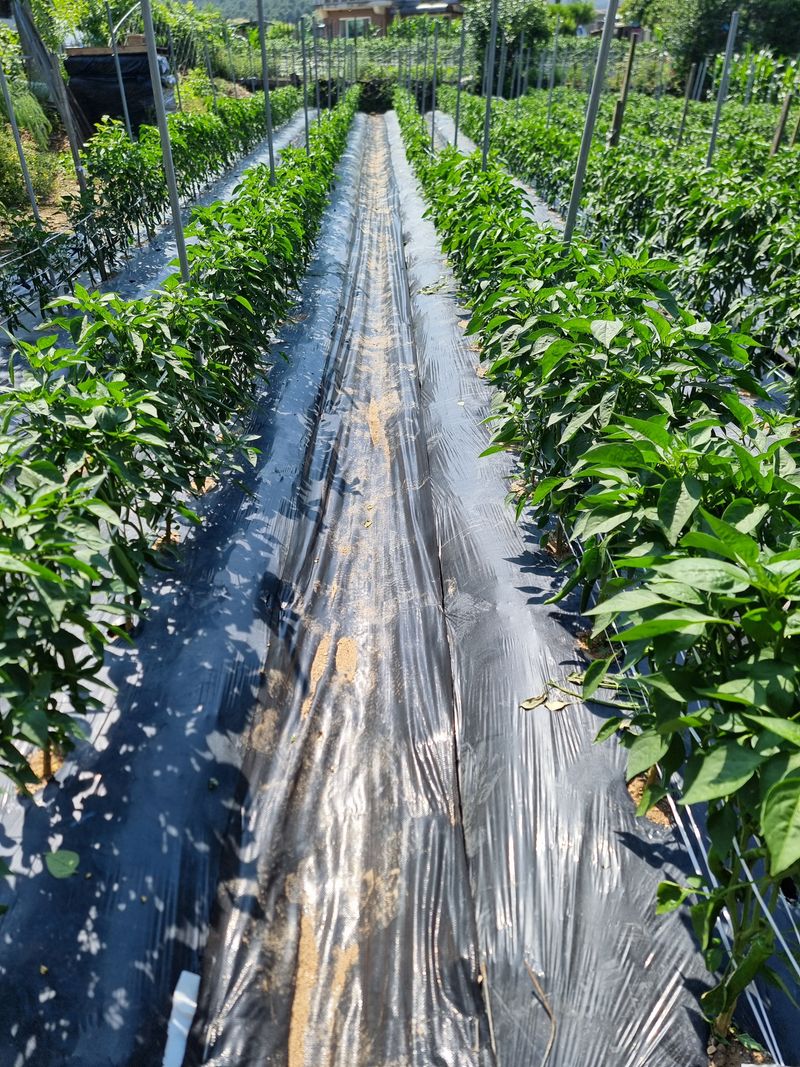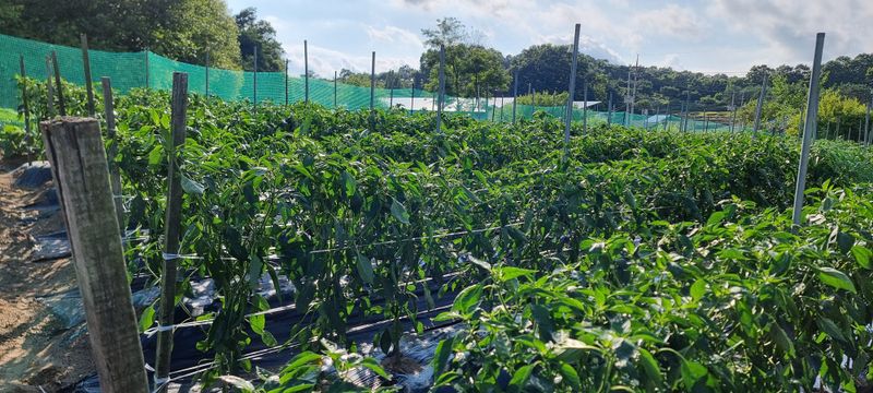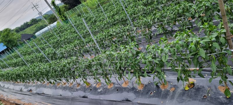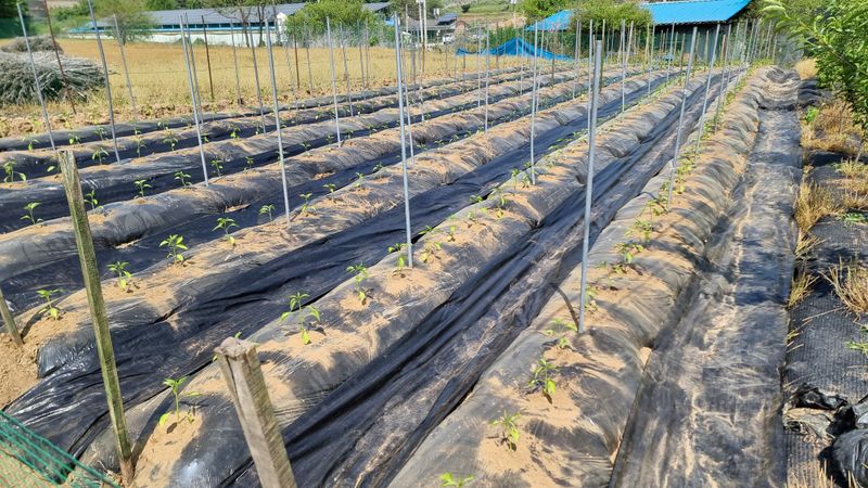 고추 홍고추 500주와 청양고추 50 주 식재 및 고추 지주설치 완료