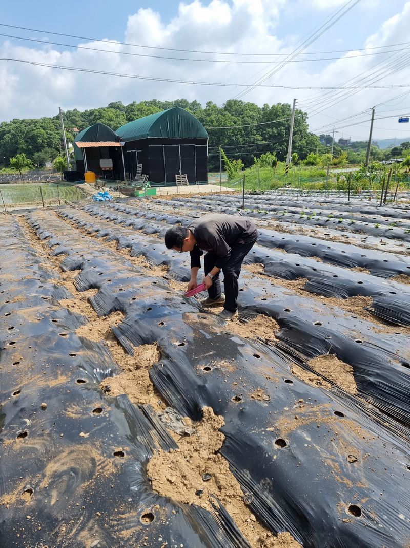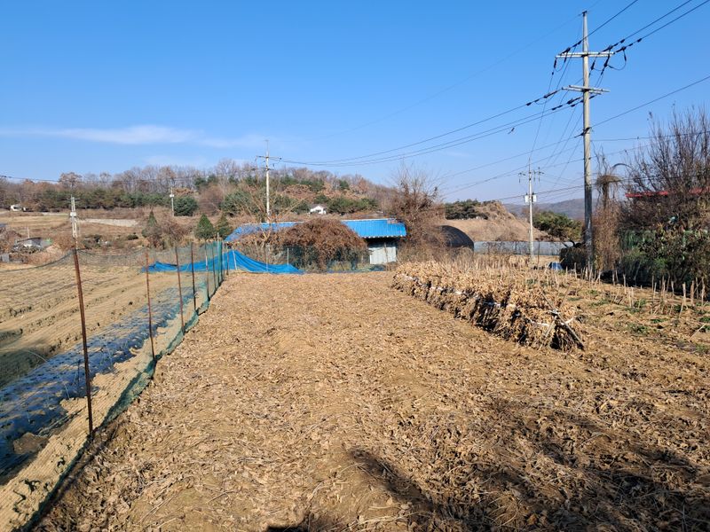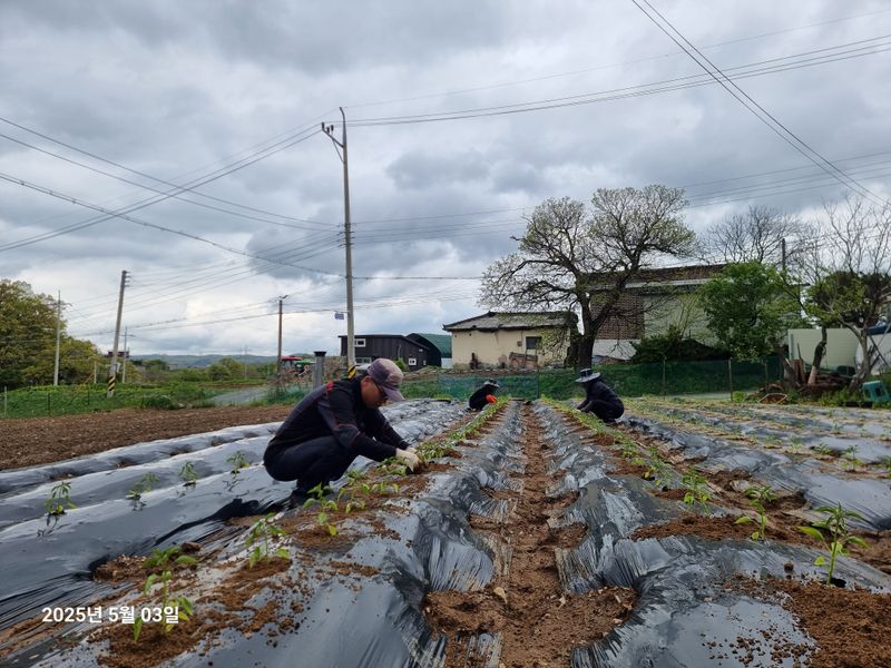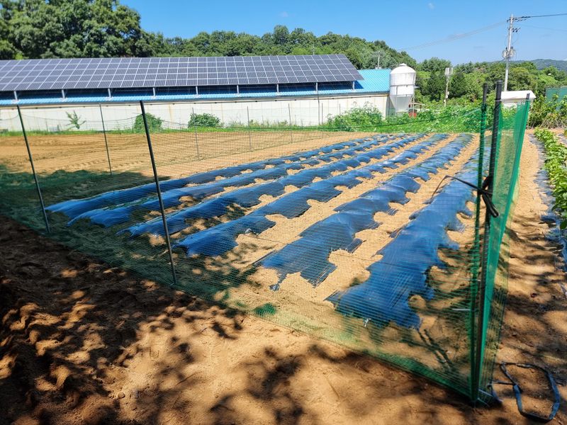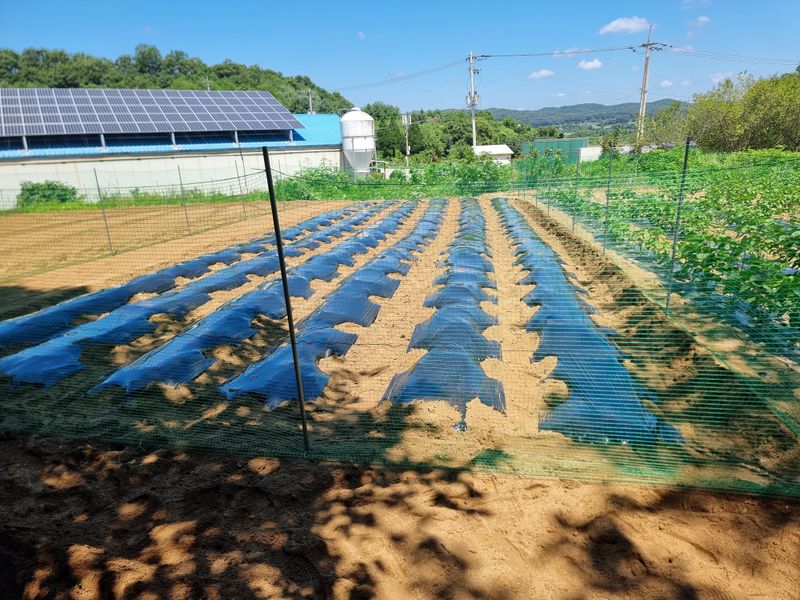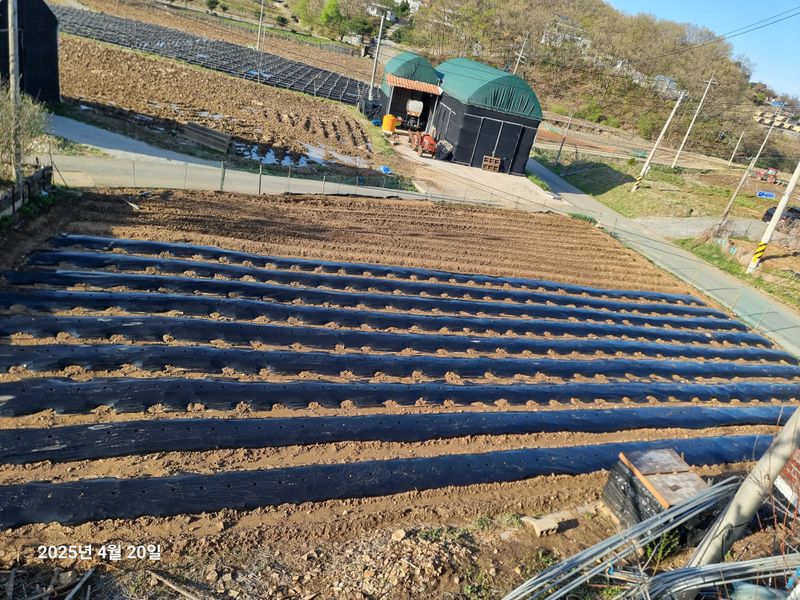 5월초에 고추모 600주 내려고 트랙터로 로타리치고 이랑 만들고 비닐 씨웠어요 그리고 동물방지용 울타리도 설치완료