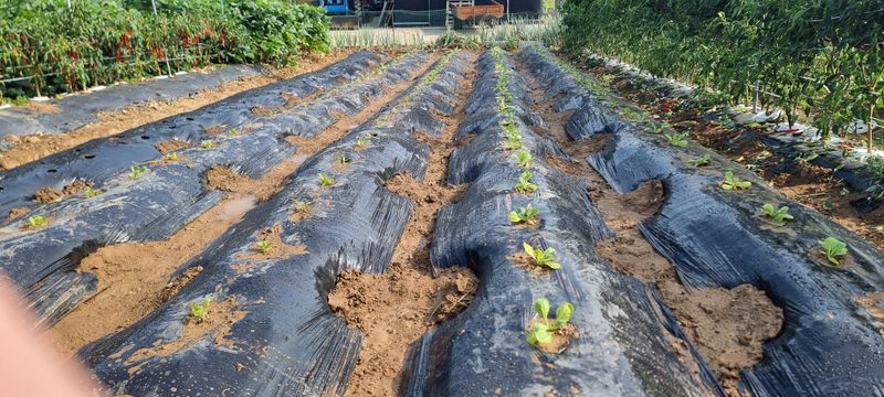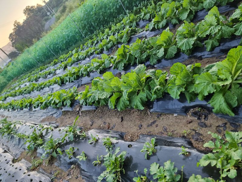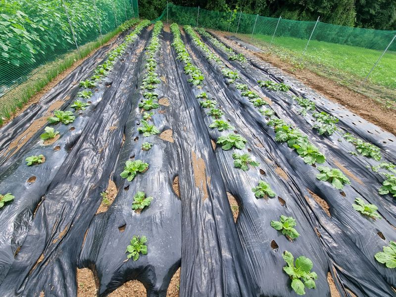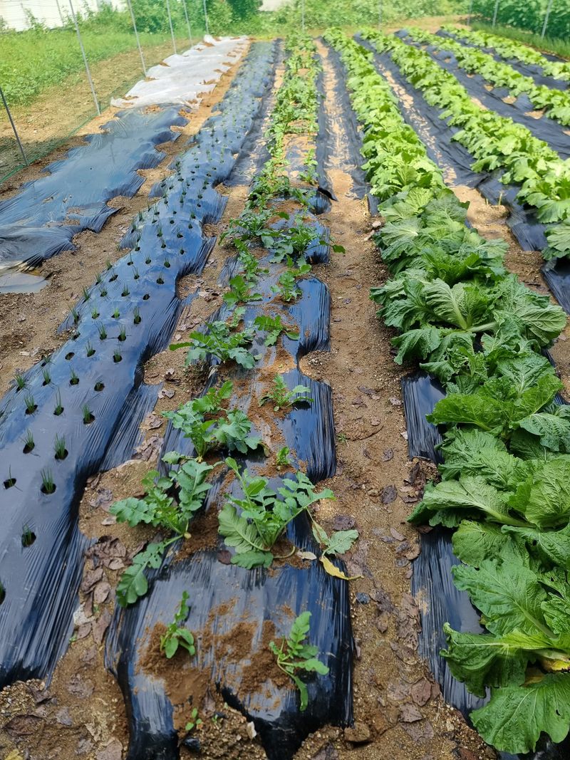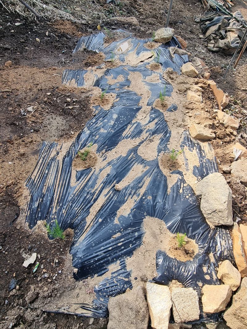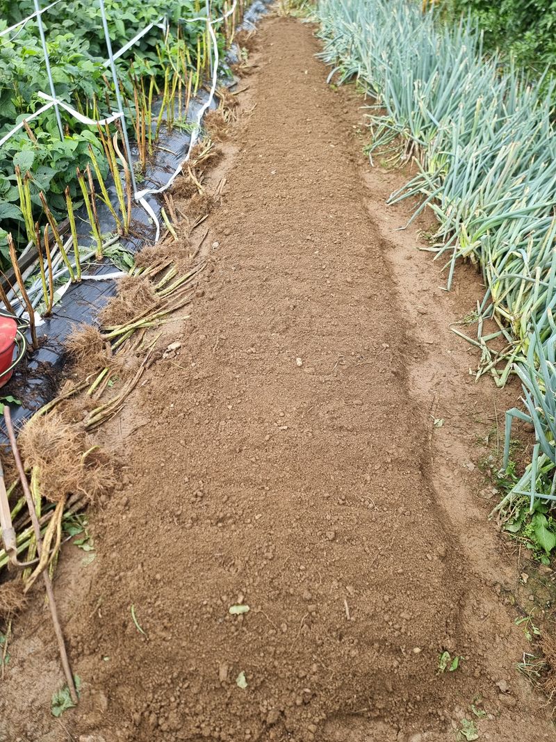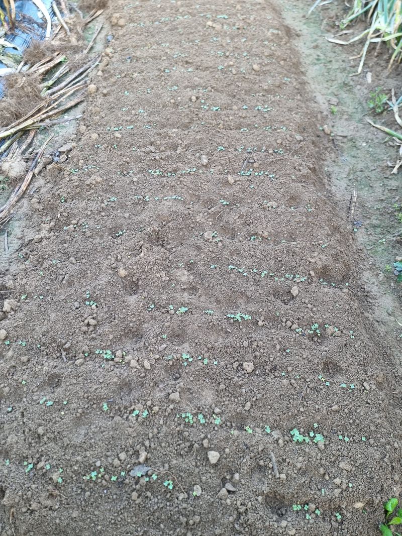 수요일부터 비예보가 있어 무 씨앗을 한 이랑 먼저 심고, 고랑에 제초매트 깔아 놓음. 남은 씨앗은 줄뿌림 해놓음