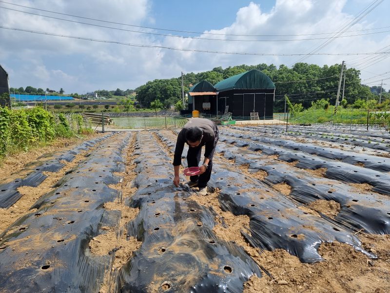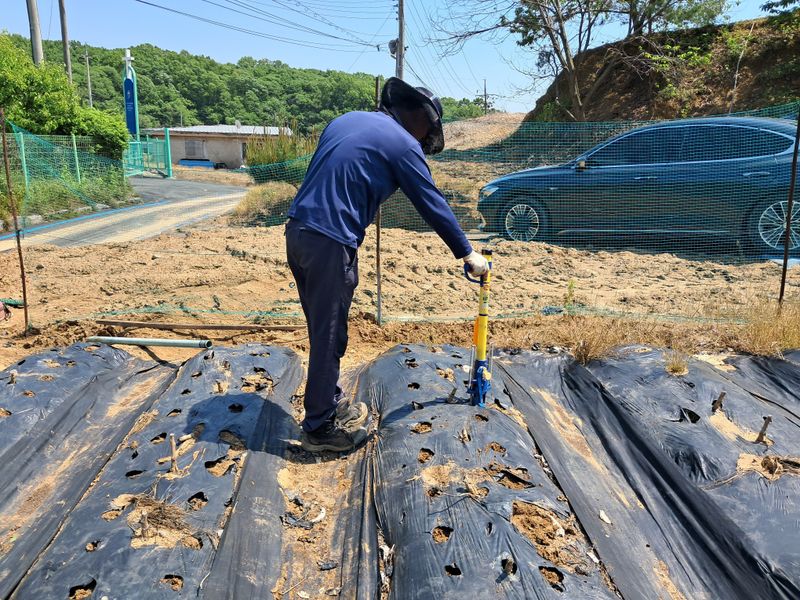 쪽파 씨앗용 심을 토지 경운 및 비닐 피복