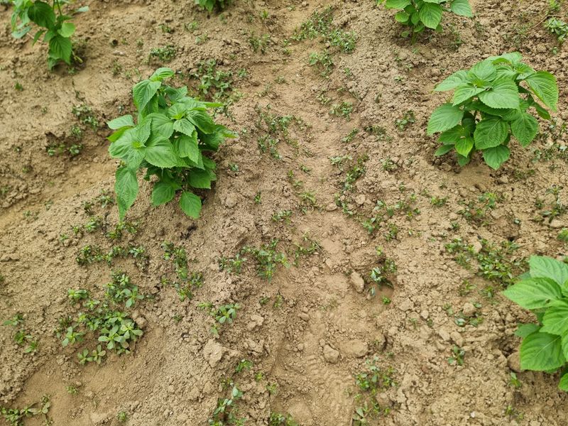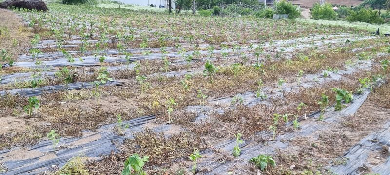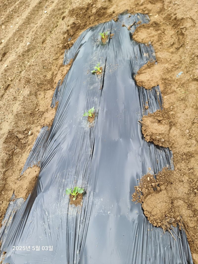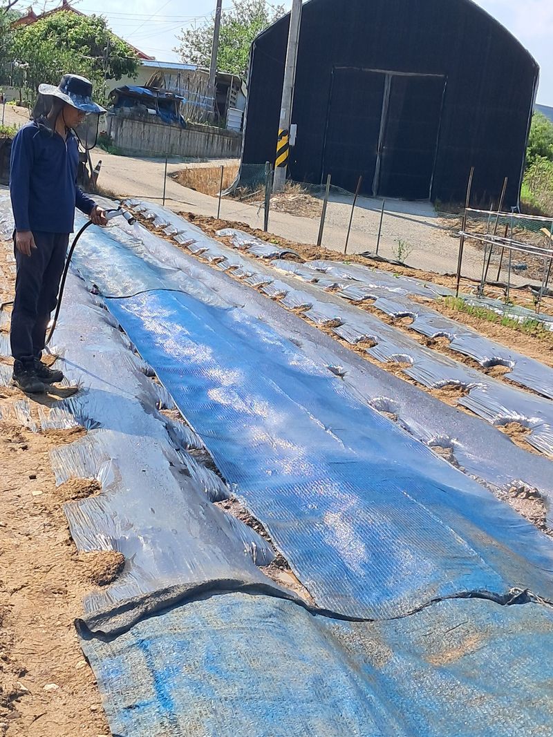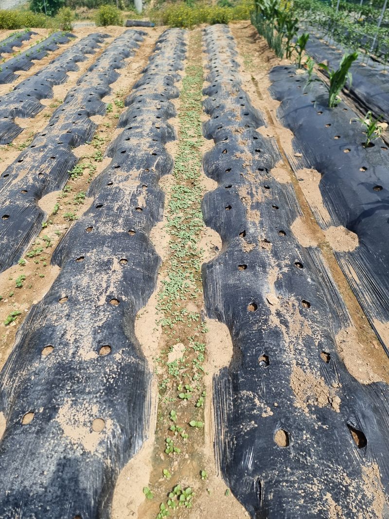 들깨 모종이 남아서 비닐 씌우고 조금 더 심었고. 먼저 심었던 밭에 풀들이 싹트고 있어서 제초제 살포함