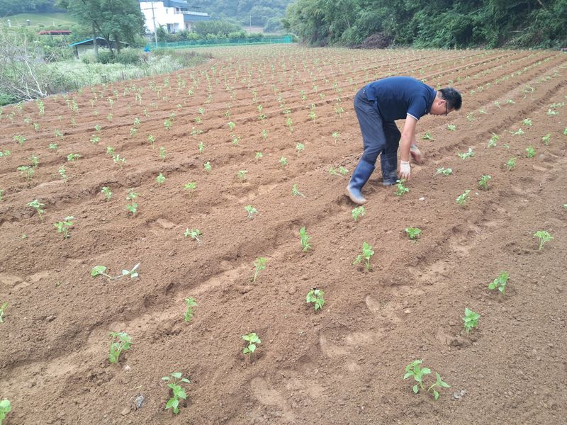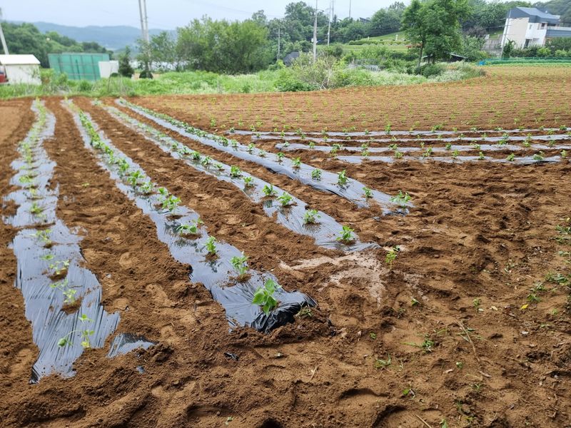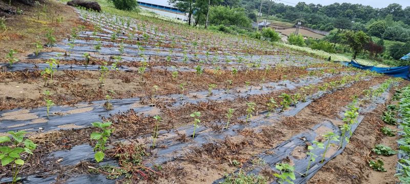 비오고 나서 들깽모종 추가이식 100평 총 500평정도 이식완료