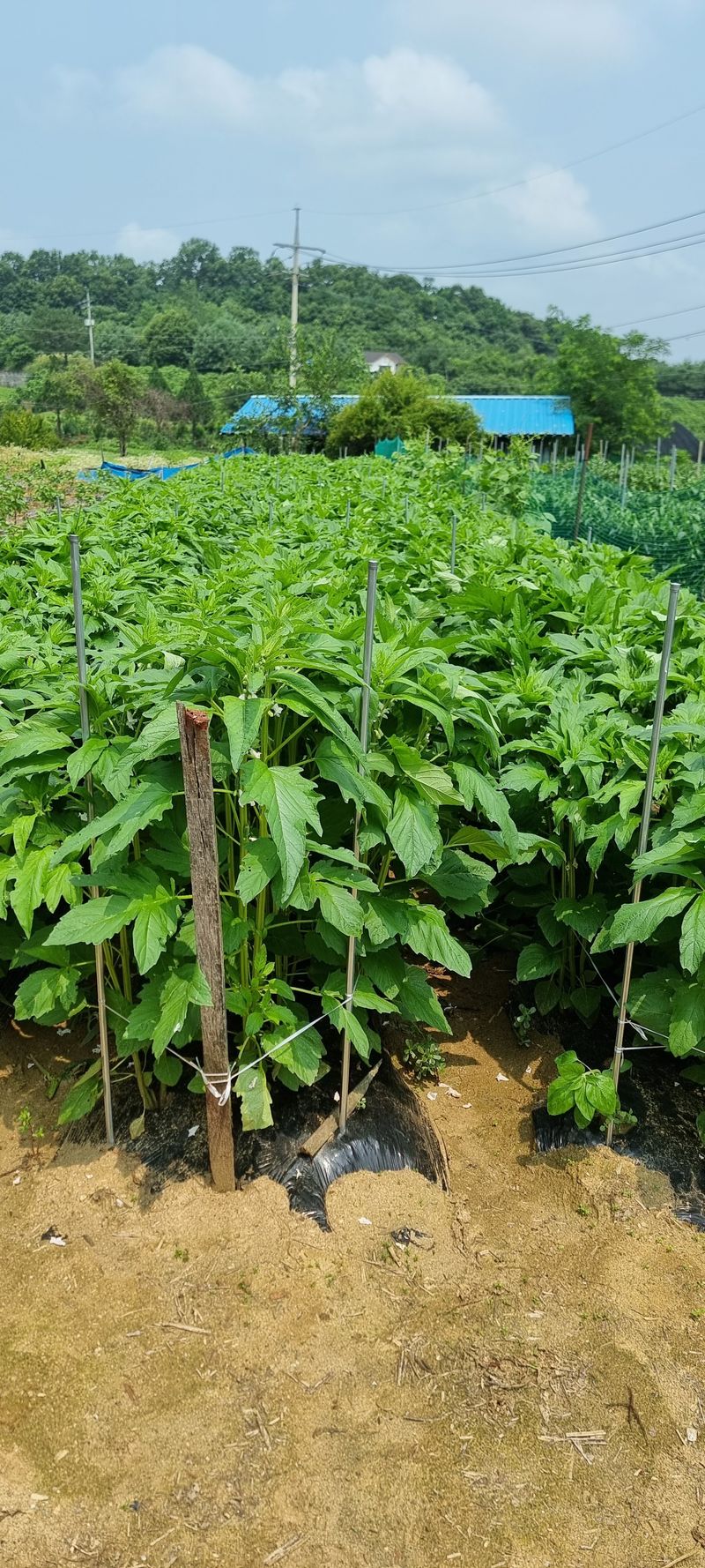 비가 자주오고해서 비가 오지 않은 틈을 타서 고추 방제하고, 참깨 심어놓은것 쓰러지지 않게 일부 지주설치 후 줄 띠우기 작업