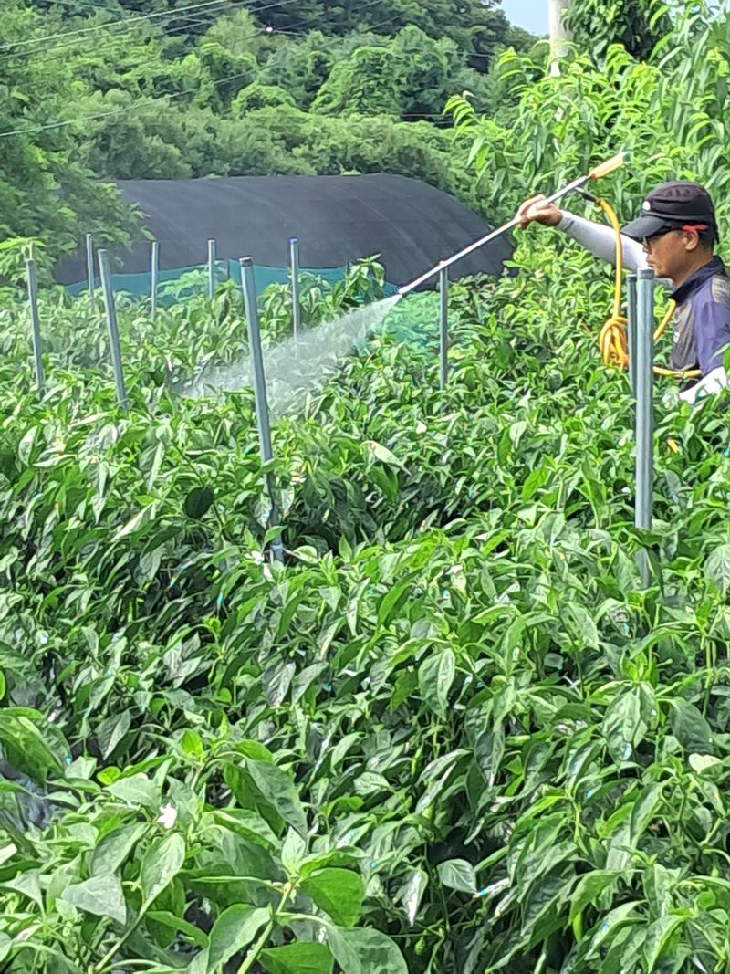 고추 방제 후론사이드. 볼리암 후레쉬.낙과아웃.전착제 살포