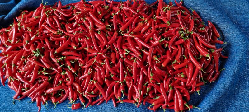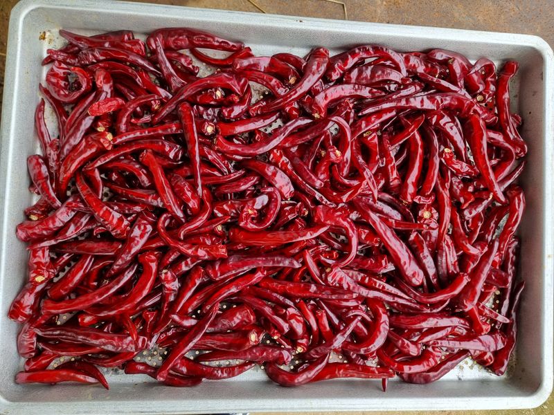 건조 완료 건 홍고추 13kg. 건 청양고추 2.8kg