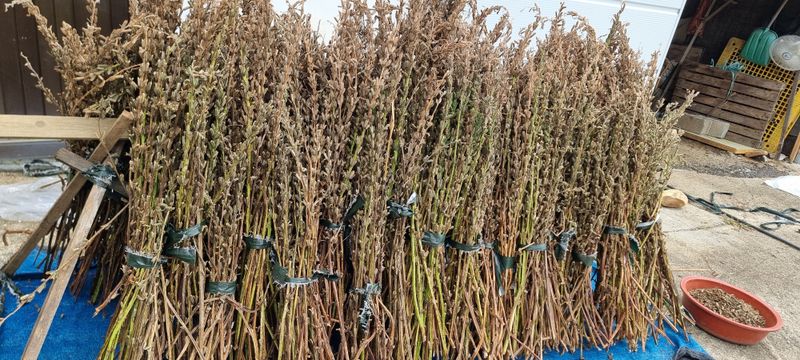 무 솎음 작업 및 쪽파 생육상태 확인 참깨 최종 수확 결과 18kg(3말)했어요. 아스파라거스는 계속 올라오나요? 2포기 심었는데 올해만 50개 정도는 수확한것 같아요 이번에도 꽤 많이 수확했어요