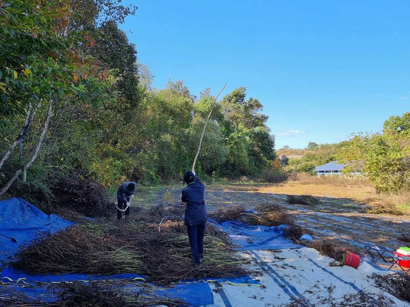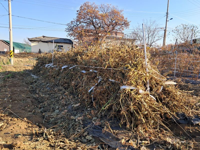 어제 탈곡 마친 백태는 58kg, 서리태는 25kg 정도 수확하였습니다. 그리고 고춧대 뽑고 지주 뽑고, 비닐 걷어놓았습니다 이제 거의 추수는 마치고 농사를 마무리한것 같습니다.
