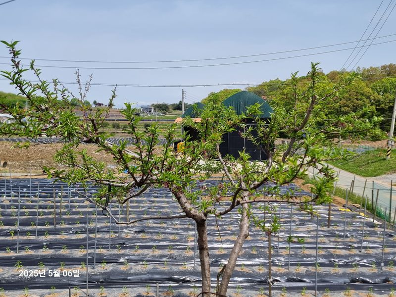 대파 240구 2판 식재 ,제초제 살포. 복숭아 및 사과나무에 살충제 및 살균제살포