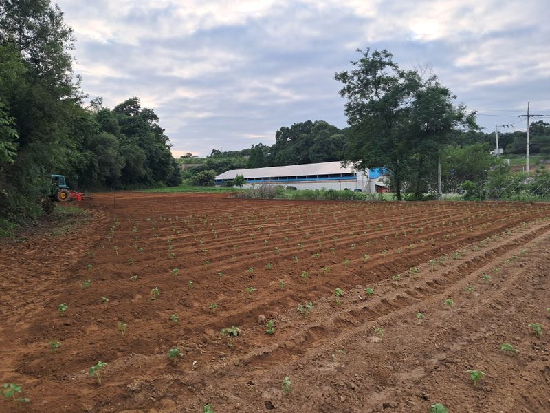 1차로 조금 심었어요 트랙터로 로터리 치고 바로 심으니 너무 편하고 좋네요