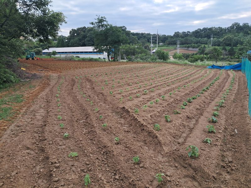 일요일 저녁부터 온다던 비가 갑자기 날짜가 버뀌어서 들깨모를 부랴부랴 뽑아서 밭에 심었어요 새로 로타리작업.비닐 피복 후에 심었어야 했는데. 제초제로 풀을 잔. 잡아야 할 일만 남았어요. 심을 면적의 반정도만 심었고요 다음주에 나머지 심으려고요 허리가 아파서 일요일은...