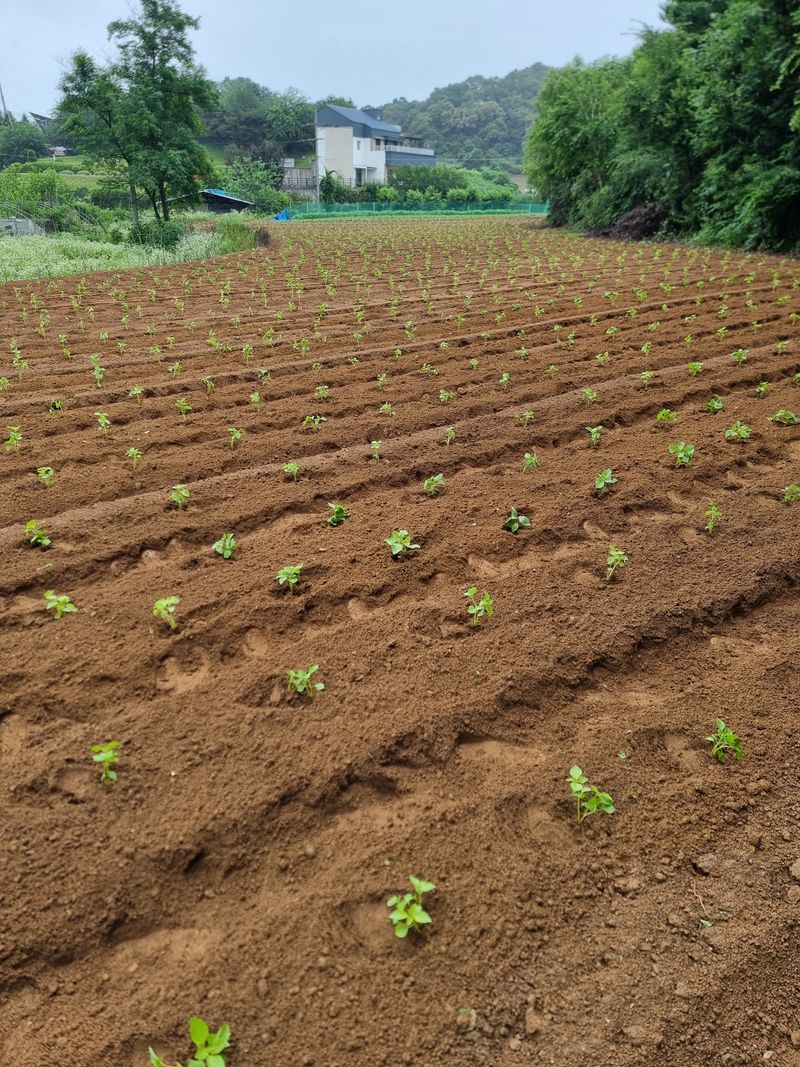 경운기로 갈아서 3이랑 만들고 먹을려고 조금 심었어요