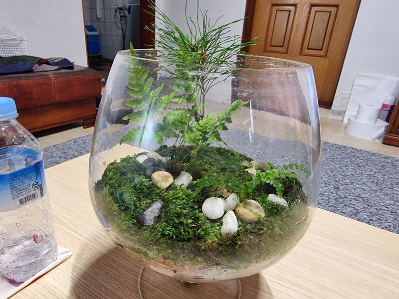 들깨밭에 풀이 조그만하게 나오고 있어서 제초제 주었어요 그리고 취미로 테라리움 해봤어요