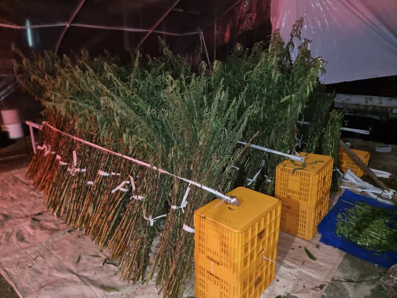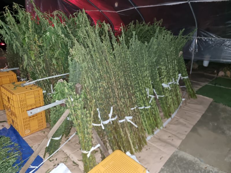참깨를 베어서 집 마당에 묶어 세우고 비닐 씌워놓음 50단 정도로 먹을 양은 충분할 듯
