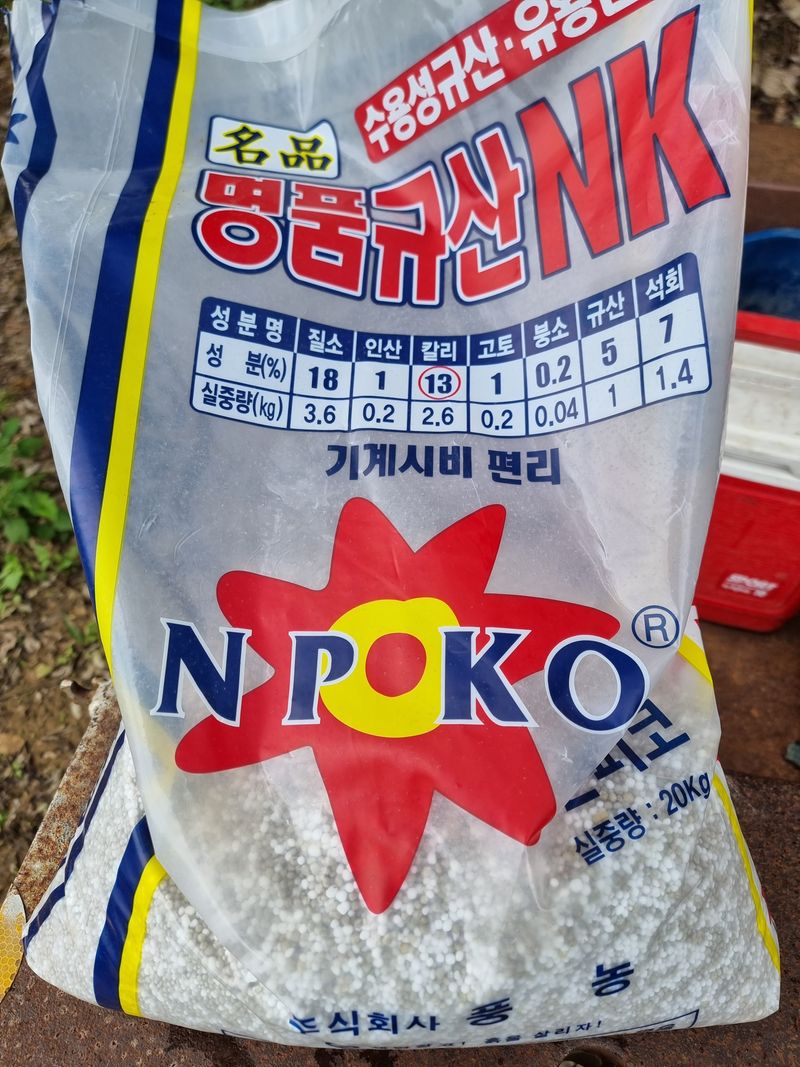 들깨 뽑아서 심고 2~3주 지나서 비료 줌 요소 35kg과 21-17-17(복합비료) 10kg 시비함
