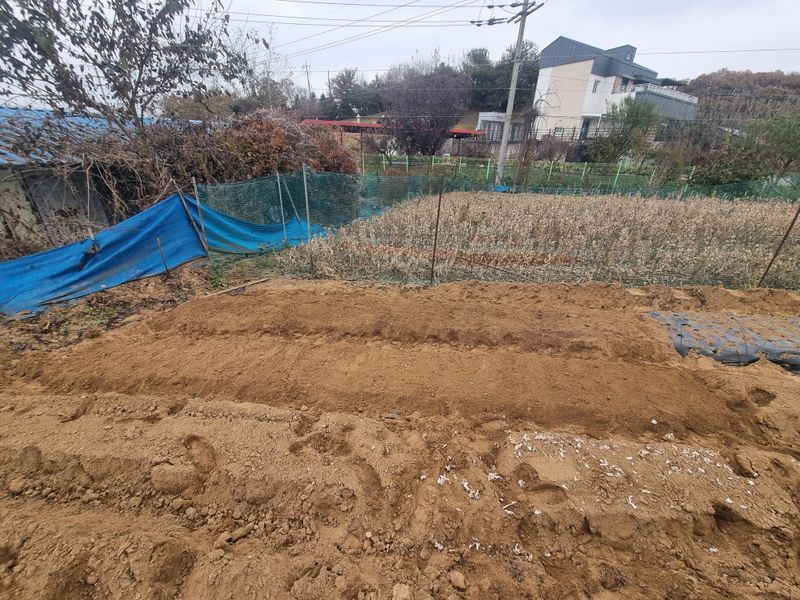 경운 작업 및 피복 후 김장 무 파종 했네요 원예용비료와 붕산비료.다이아톤입제(벼룩입벌레약).세티스 입제(진딧물약)