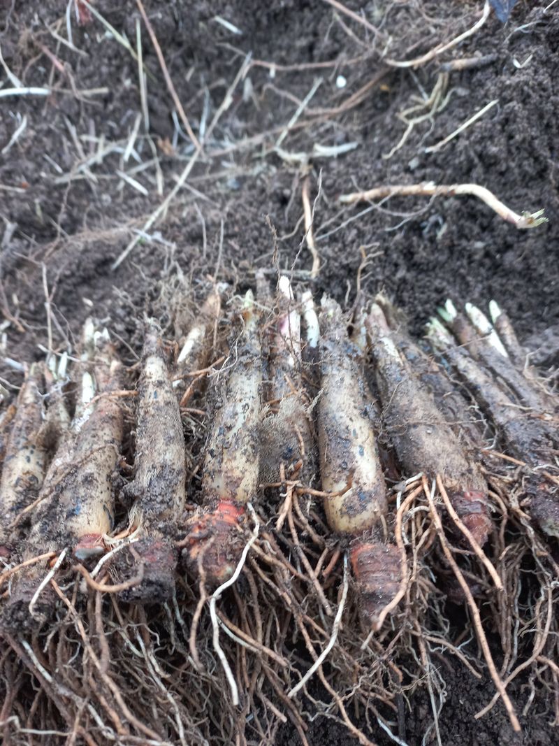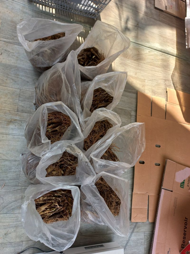 명이나물. 종근을 택배로. 발송하기 위하여 포장하였음