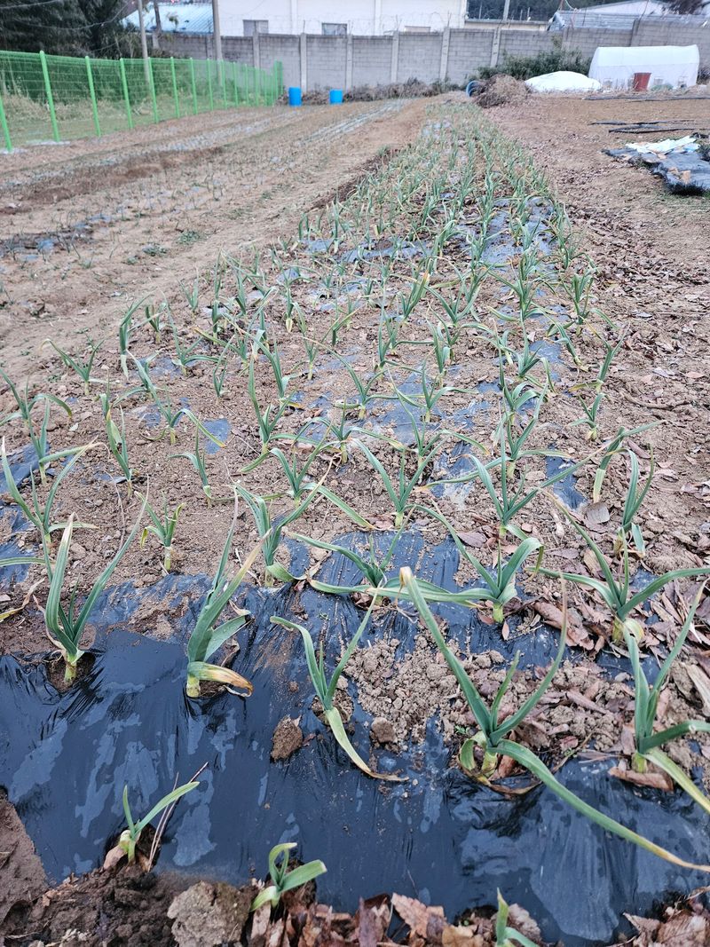 제초제를 사용하지 않았더니 양파모종이 풀에 뭍여서 자라지 않아서 풀 뽑기를 했어요