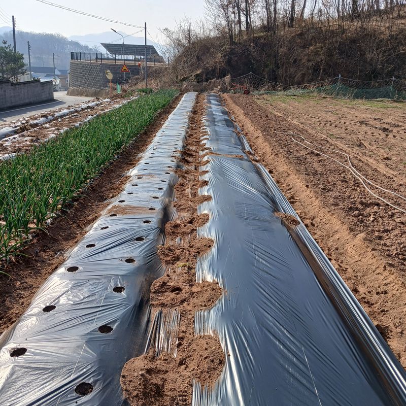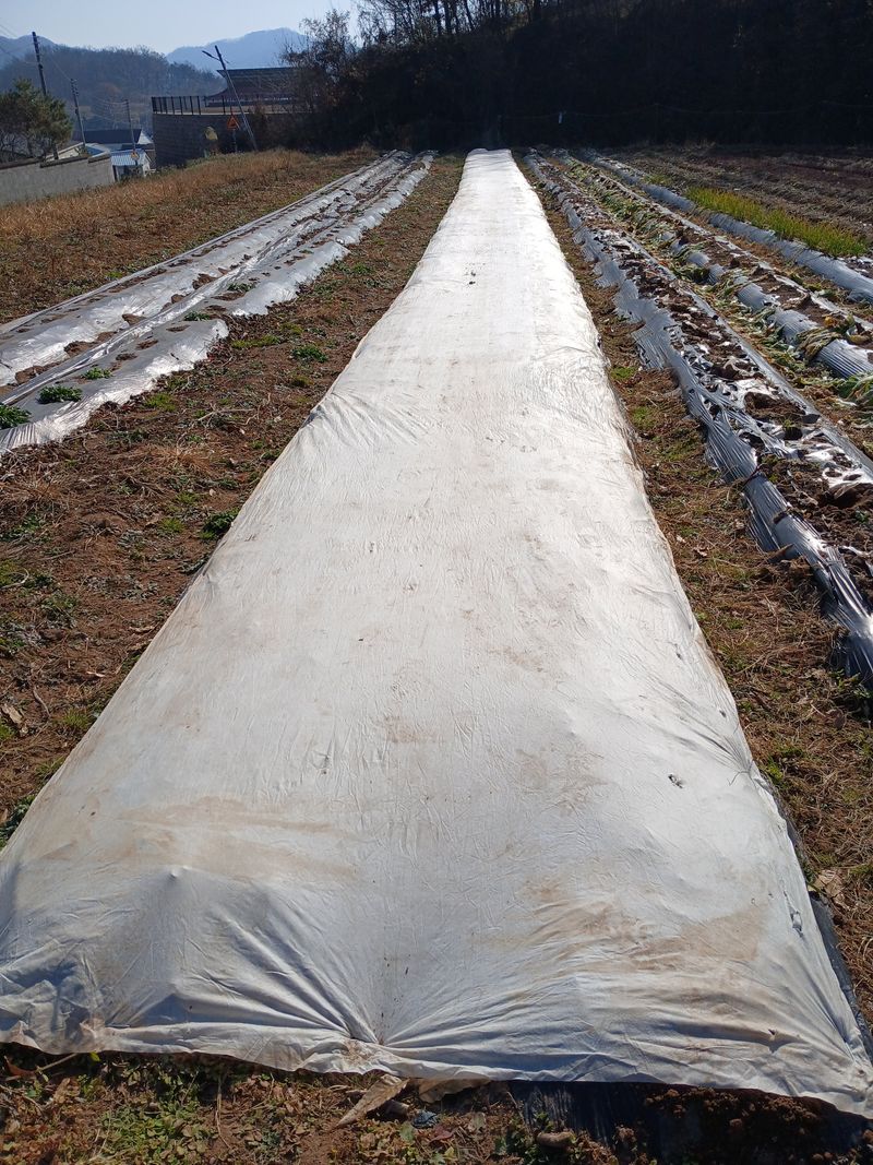마늘밭 잡초 제거하고 흰부직포 설치함