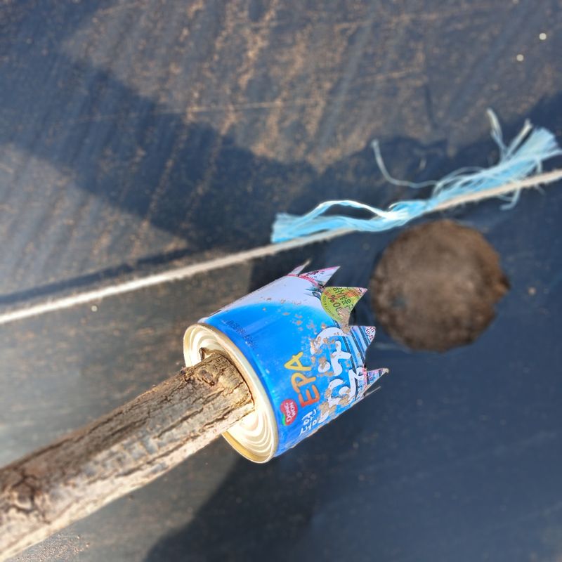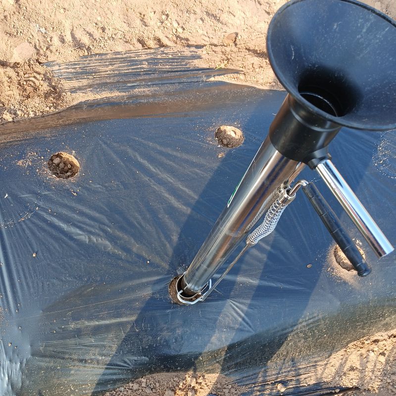 강낭콩 호스로 물 준후 비닐 구멍 주위로 흙을 덮음 (건조 방지를 위해)
