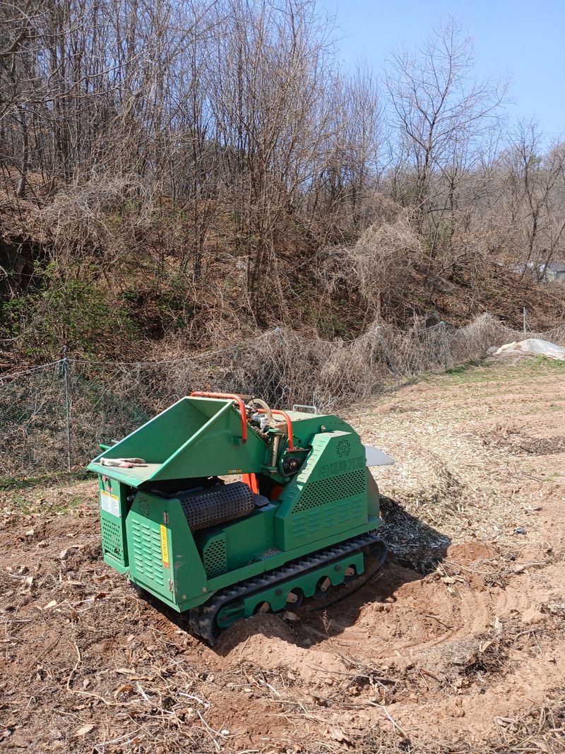 들깨대 파쇄 ㅡ농업기술 센타에서 파쇄기 임대(2만원)하여 패쇄후 흩어 펼치고 트렉로타리 시킴. 마늘 분수호스로 물 공급함