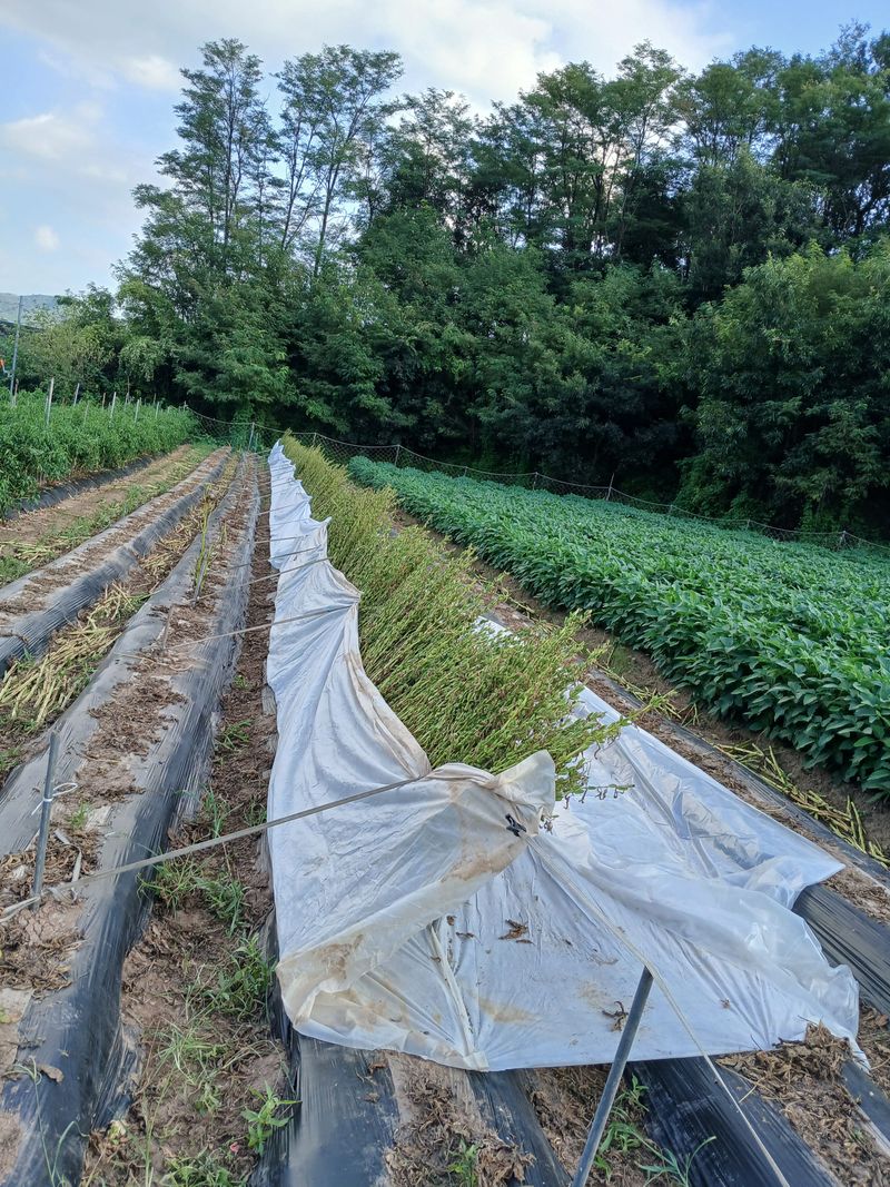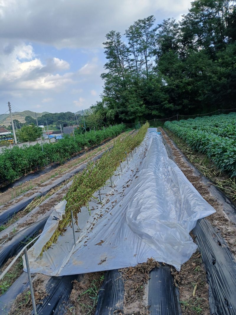 가지 참깨 수확(17일) 건조실시~ 비닐하우스가 없어 노지에서 파이프를 박고 부직포 깔아서 건조실시