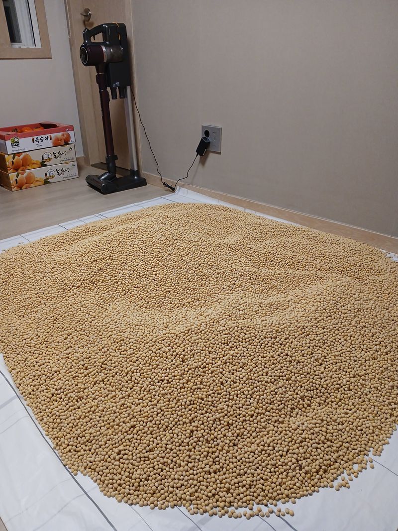 탈곡,정선기 거친후 일일이 수작업으로 최종 선별 완료한 메주콩~ 아내와 함께 몇일간 거실에서 고생한 보람이 넘 깨끗한 콩이 되어 이뻐요.